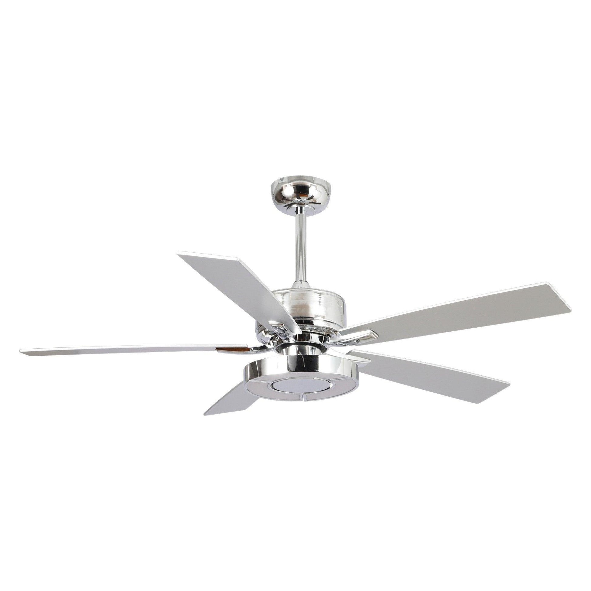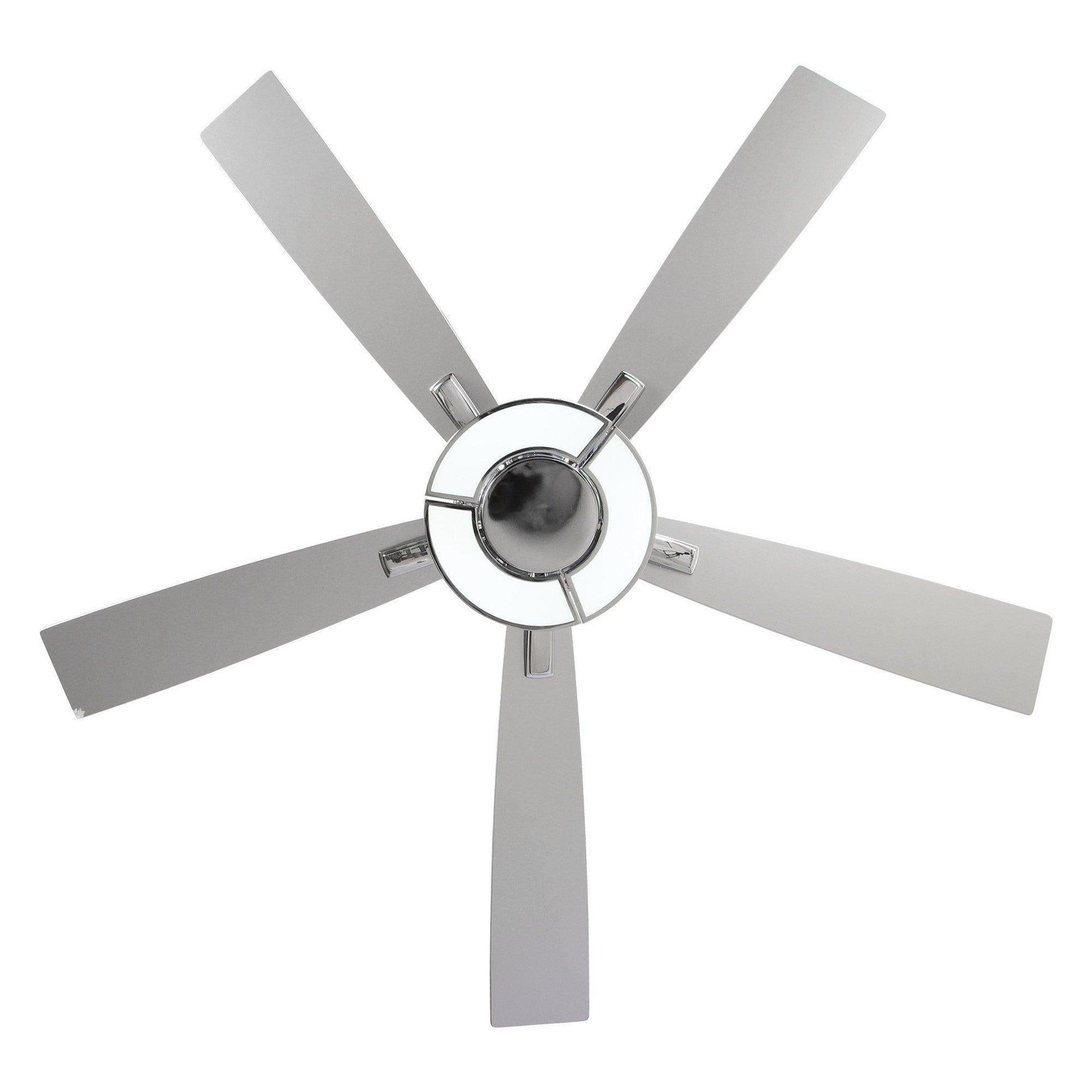 The Vendome 52-Inch Chrome Ceiling Fan is crafted from iron, complemented by a minimalist industrial style and 5 double-sided blades to match many of today's interior style trends. The Vendome comes with an LED light kit, and the included handheld remote control allows for easy operation of the fan's six speeds and light colors.