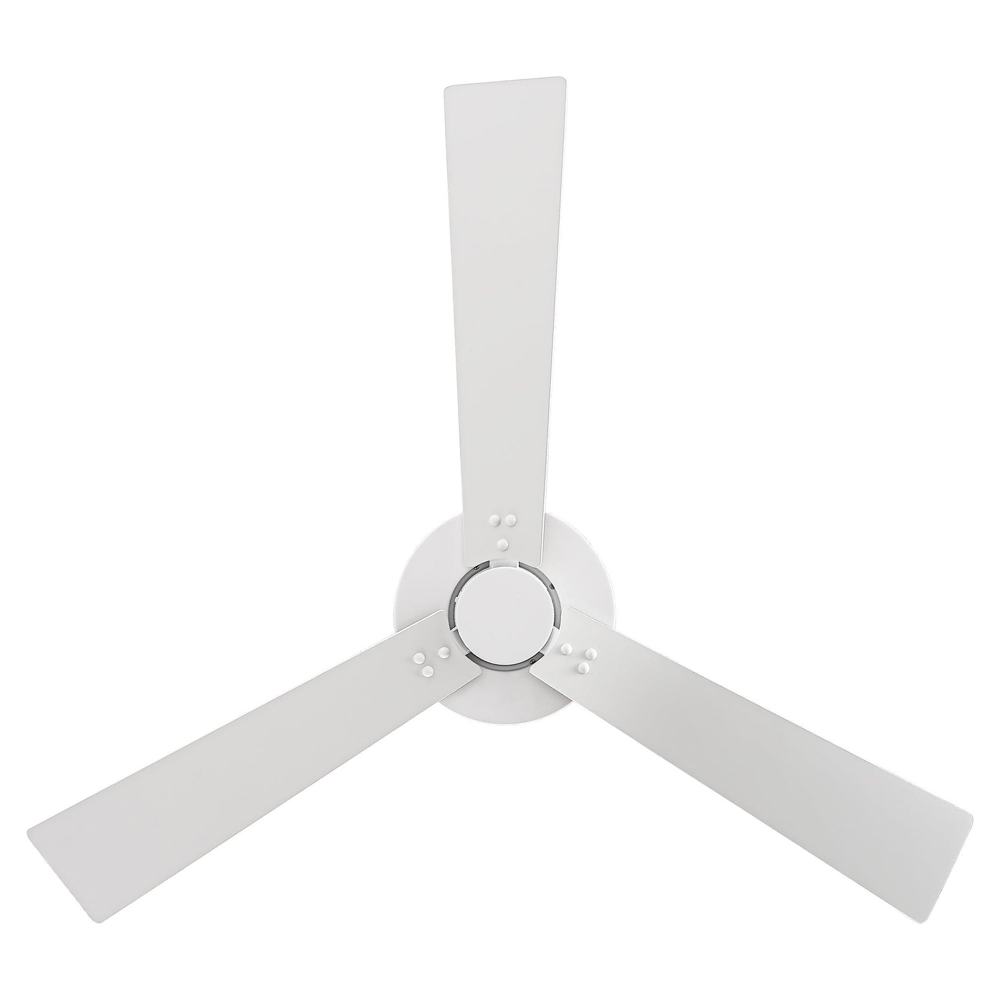This modern 52" white ceiling fan seamlessly complements contemporary décor. Equipped with a 4-speed reversible motor, it offers versatile functionality and longevity. The included wall control facilitates easy adjustment of fan speeds. The fan also boasts a lifetime warranty on the motor, ensuring peace of mind for years to come.
