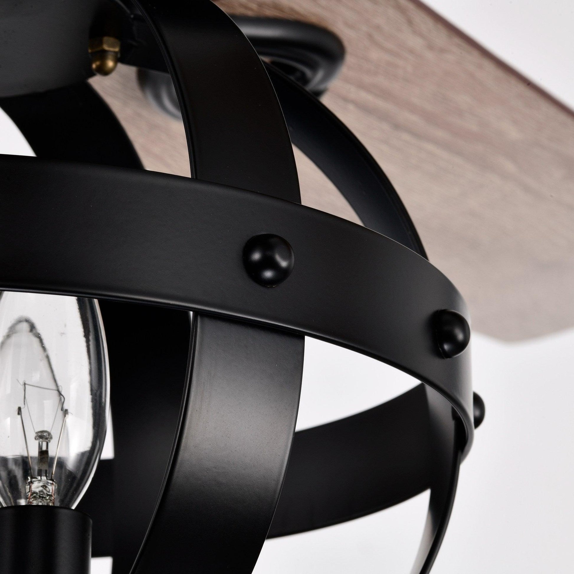This reversible blade ceiling fan is a great option for keeping a room cool while delivering on-trend style. Featuring 5 manufactured wood blades and a metal base, this piece is a great option for larger rooms thanks to the 52-in-blade span. Below, 3 candle lights with included bulbs allow this piece to keep your space bright as well as cool, while an openwork metal globe shade with rivet details adds an industrial-inspired accent perfect for a modern farmhouse. This piece includes a remote control so you can control the breeze without getting up.