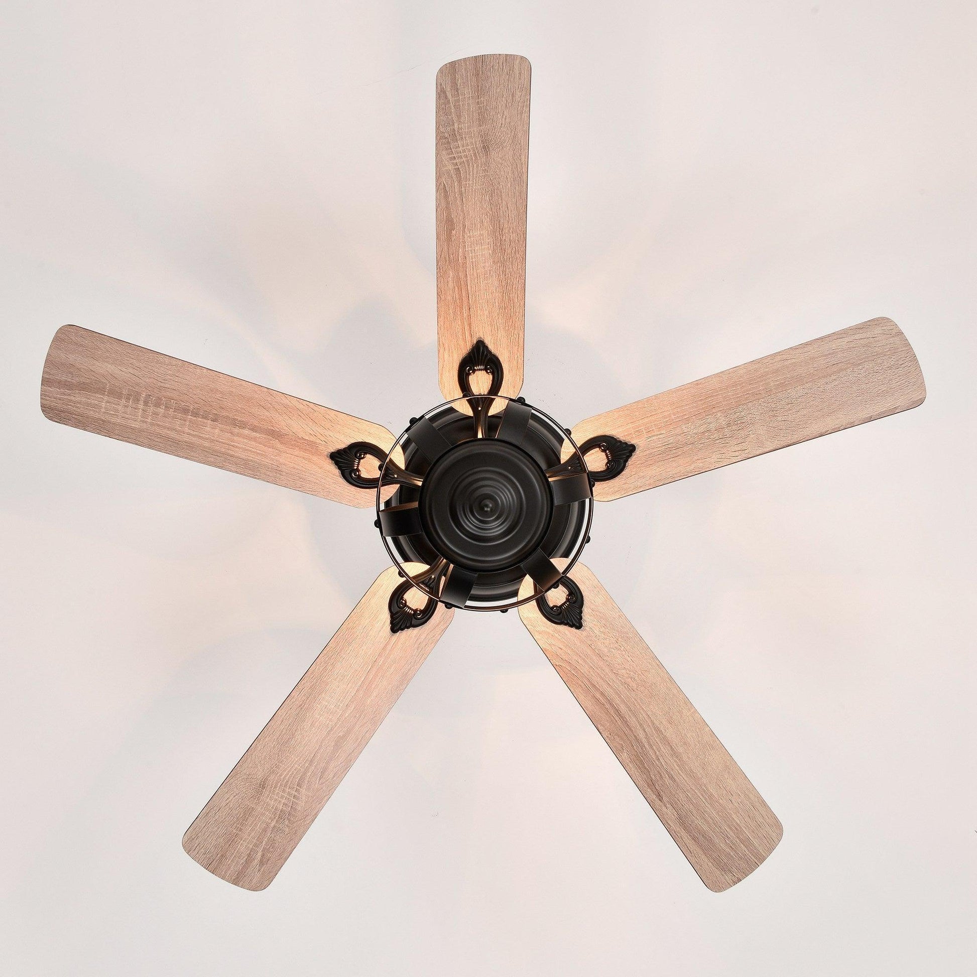 52" | Iron, Plywood, | L4.9"&L9.8" | 5*Reversible Plywood Blades | 3*E12*MAX40W light bulbs(not included) | AC motor | Remote control | 3 | Yes | Dry location |