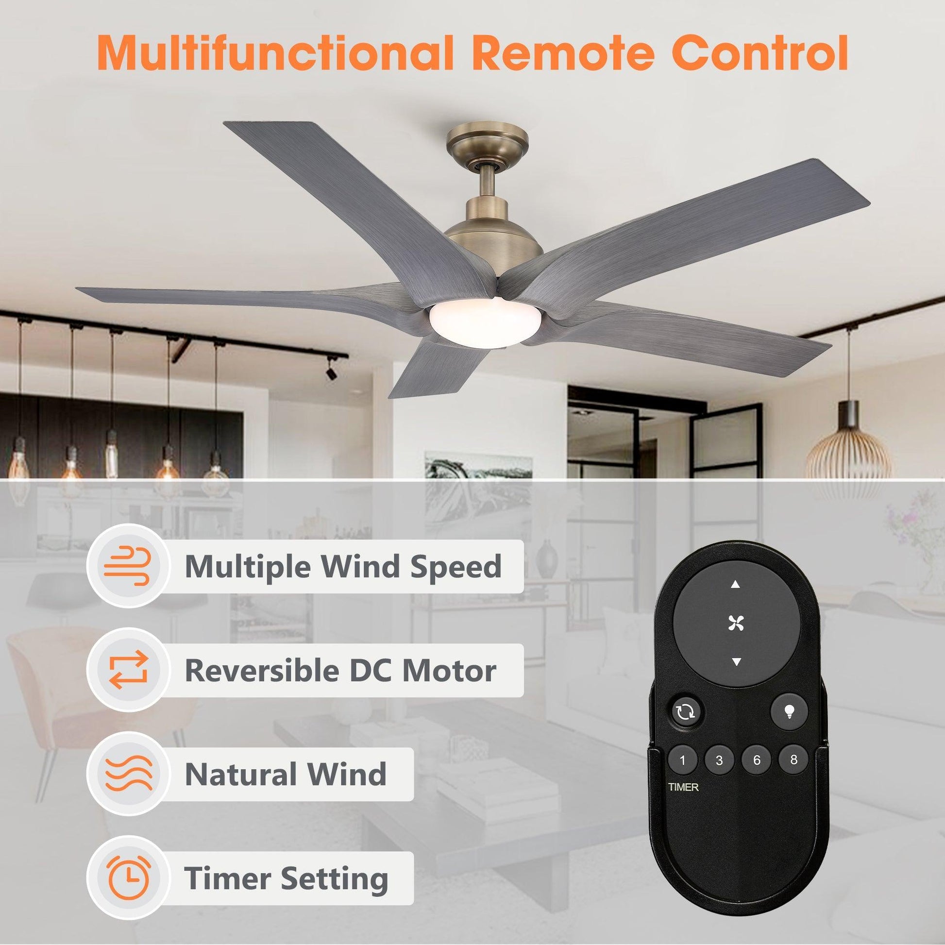 Inspired by the golden age of flight, this 56" industrial fan elevates technology to new heights. The bronze finish, moreover, pairs perfectly with the oak-colored fan blades, lending a sophisticated touch to your space. It also features a 3000k light panel with a built-in bulb, providing not only powerful air circulation but also soft lighting. Therefore, this fan not only cools your space but also enhances its aesthetic appeal.