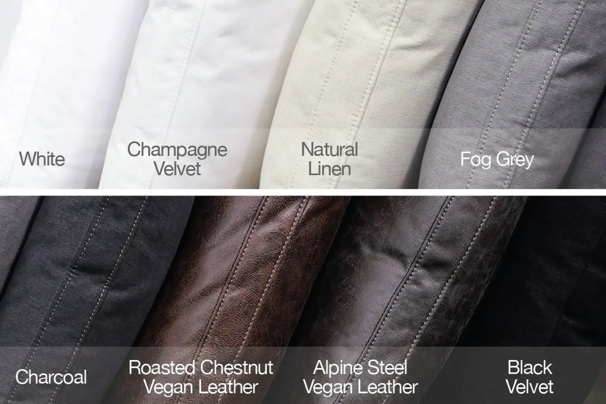 Alpine Steel Vegan Leather – sleek and modern with a cool tone. Think Tesla vegan leathers, with no cowhide stickiness. And yes, it’s even washable.
