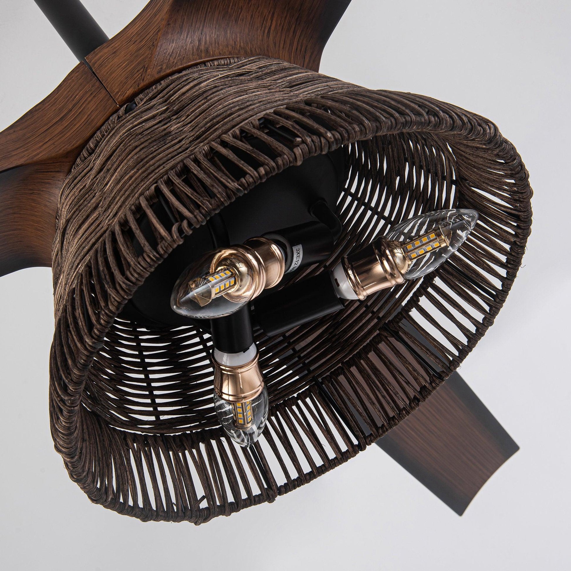 60" | Iron, ABS, Rattan | L4"&L10" | 3*Reversible ABS Blades | 3xE12 base B12 light bulb(not included) | AC motor | Remote control | F8251-CONTROLLER | 6 | Yes | Dry location |