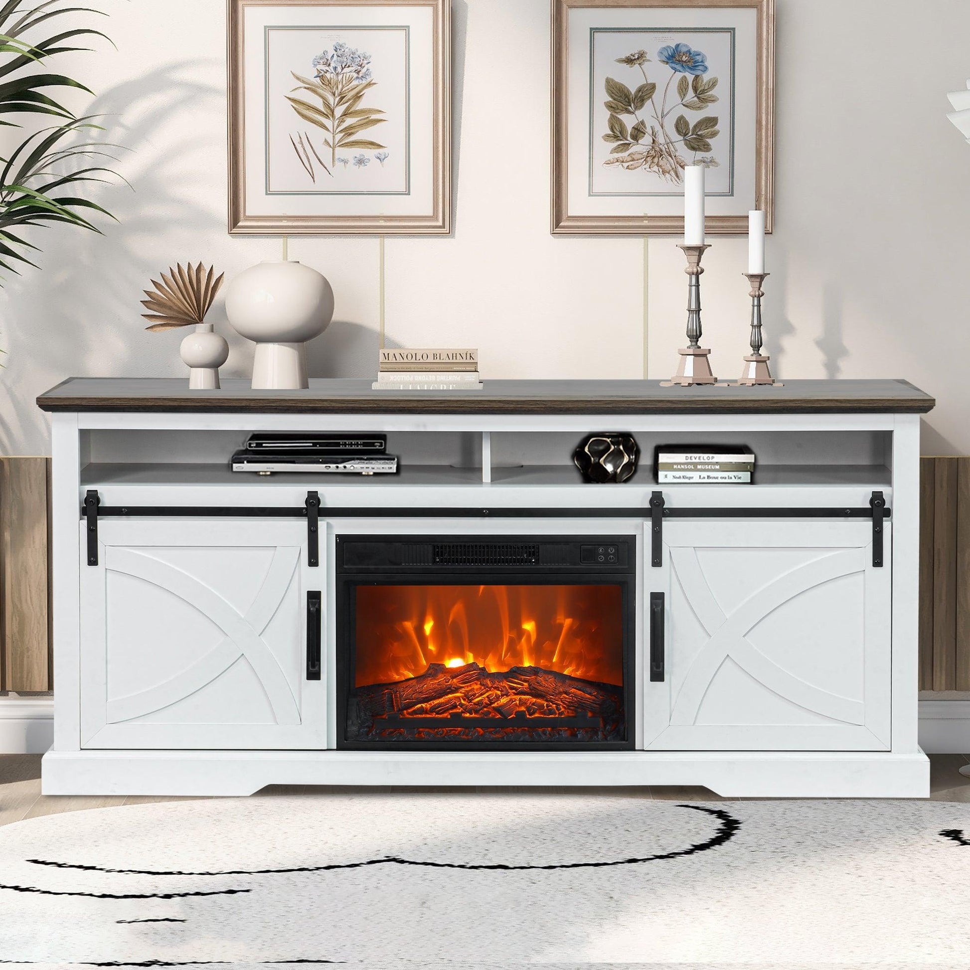 68" Farmhouse TV Stand with 23" Insert Opening Electric Fireplace