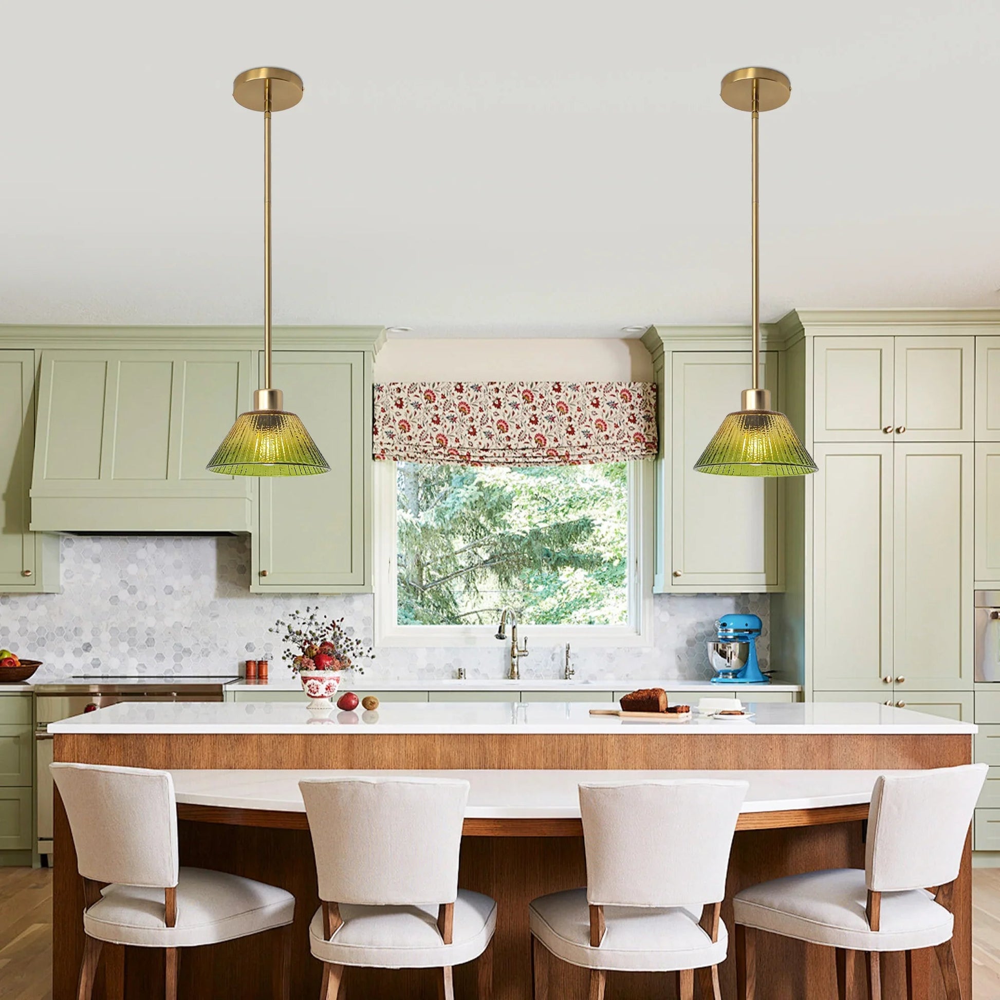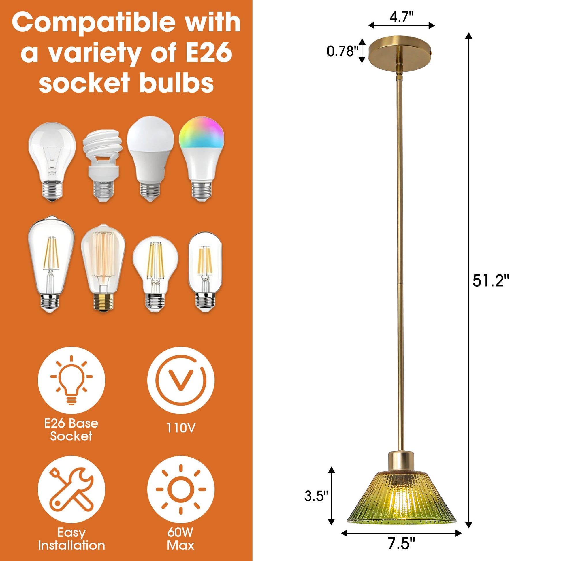 【Modern Pendant】: Sleek modern design featuring a yellow-green gradient glass shade for hanging over tables or islands.