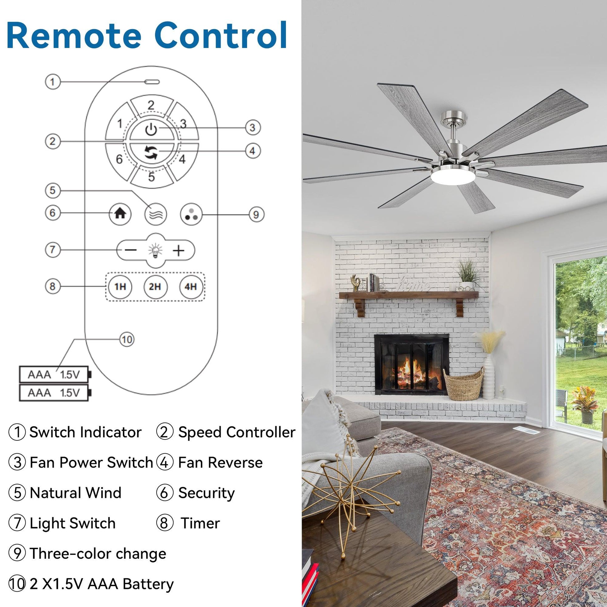 【Stylish Design】: This 72-inch Modern DC Motor Downrod Ceiling Fan with LED Light features a sleek, modern design that perfectly complements any contemporary home decor.