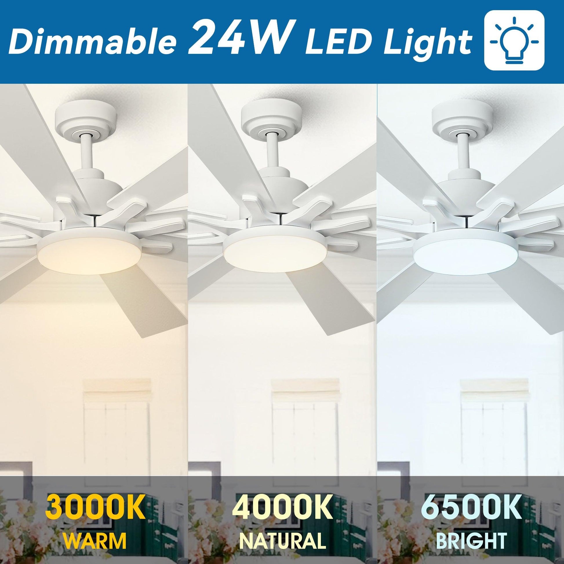 【Integrated LED Light】: The fan comes with an integrated energy-efficient LED light, which not only serves as a light source but also enhances the overall functionality of the fan. The LED light emits a soft, warm glow that adds a cozy ambiance to your space.
