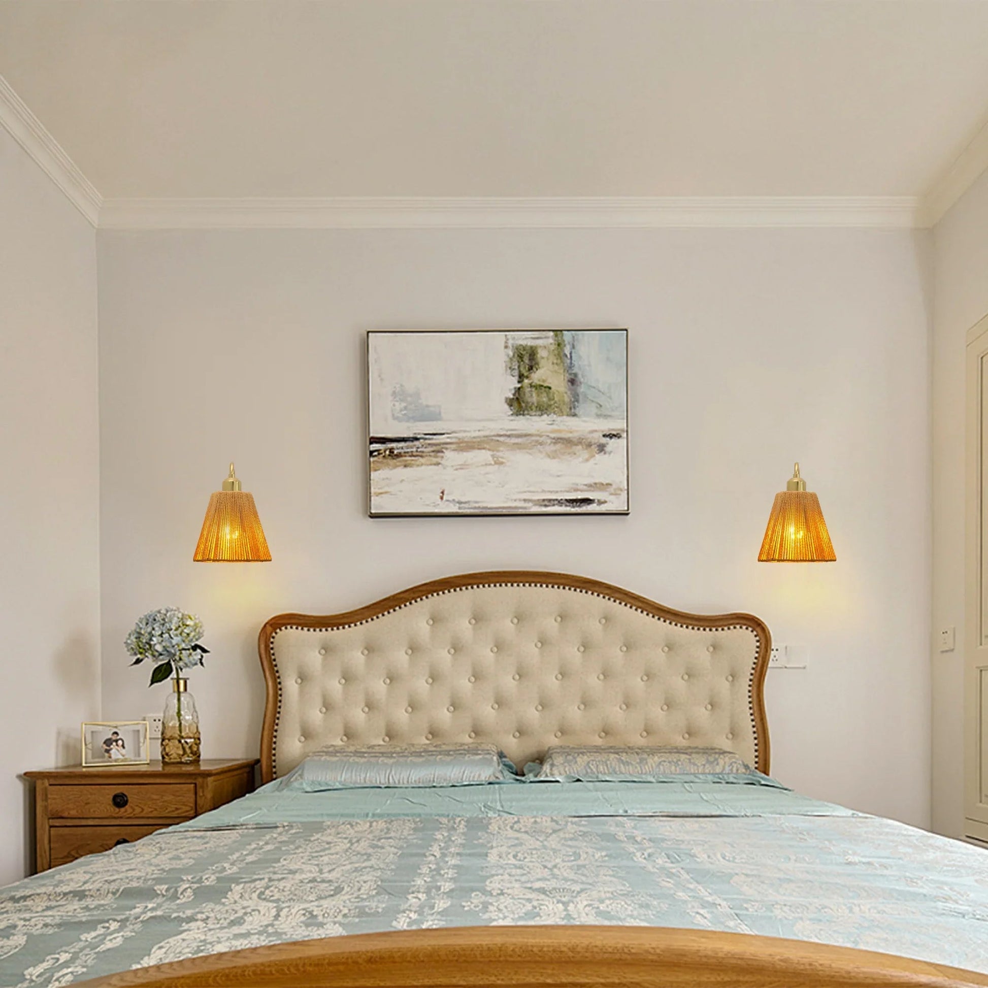 Elevate your space with the Hilda Wall Sconce – blending farmhouse charm, a warm golden finish, and natural hemp rope texture in a versatile 9-inch design.