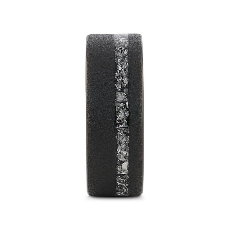 ABYSS Sandblasted Black Tungsten Ring with Meteorite Fragments Inlay – 8mm