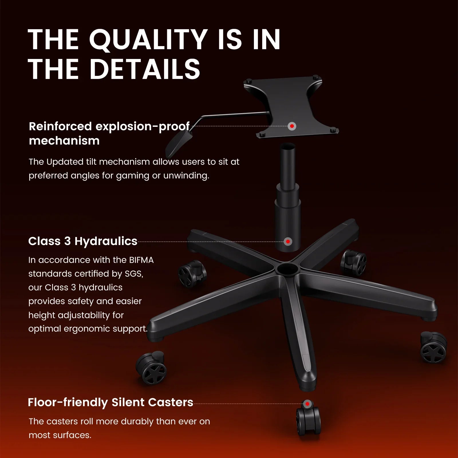 The Updated tilt mechanism allows users to sit at preferred angles for gaming or unwinding.
