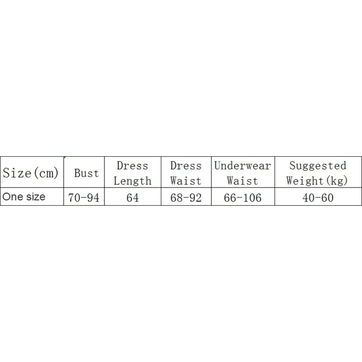 Size (cm) | Dress Length (cm) | Dress Waist (cm) |