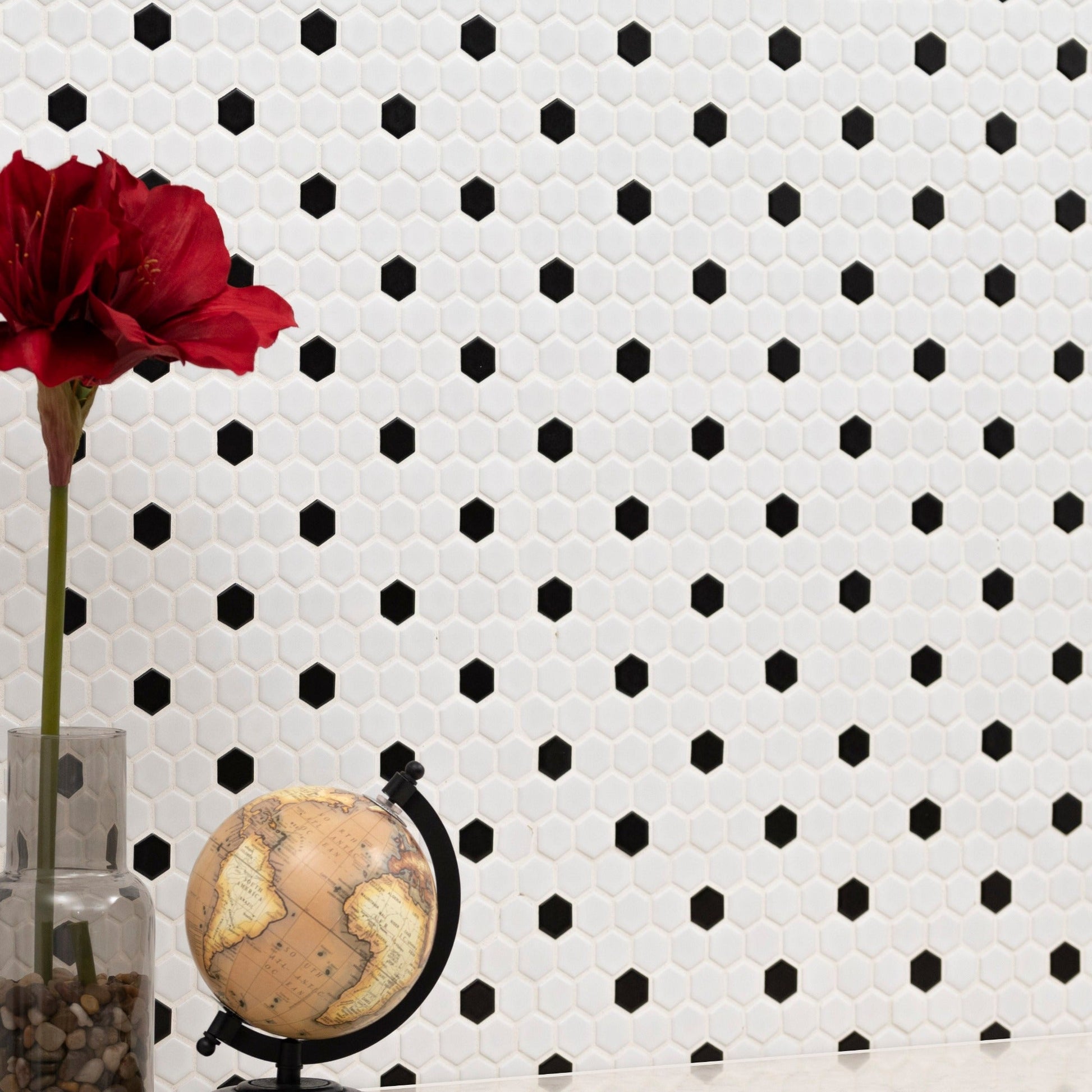 Vintage style with a modern twist. MSI's Adelaide Hexagon Matte Porcelain Tiles feature a classic combination of black and cool white 1 in. hexagon shapes in a unique graphic pattern that is both bold and nostalgic. This striking tile is perfect for use as a backsplash, a porcelain floor tile, in the shower, or to create countertops. In addition, Adelaide Hexagon Matte porcelain tiles are easy to maintain and complement various other materials from MSI's extensive portfolio of surface solutions, including natural stone slabs and tiles.