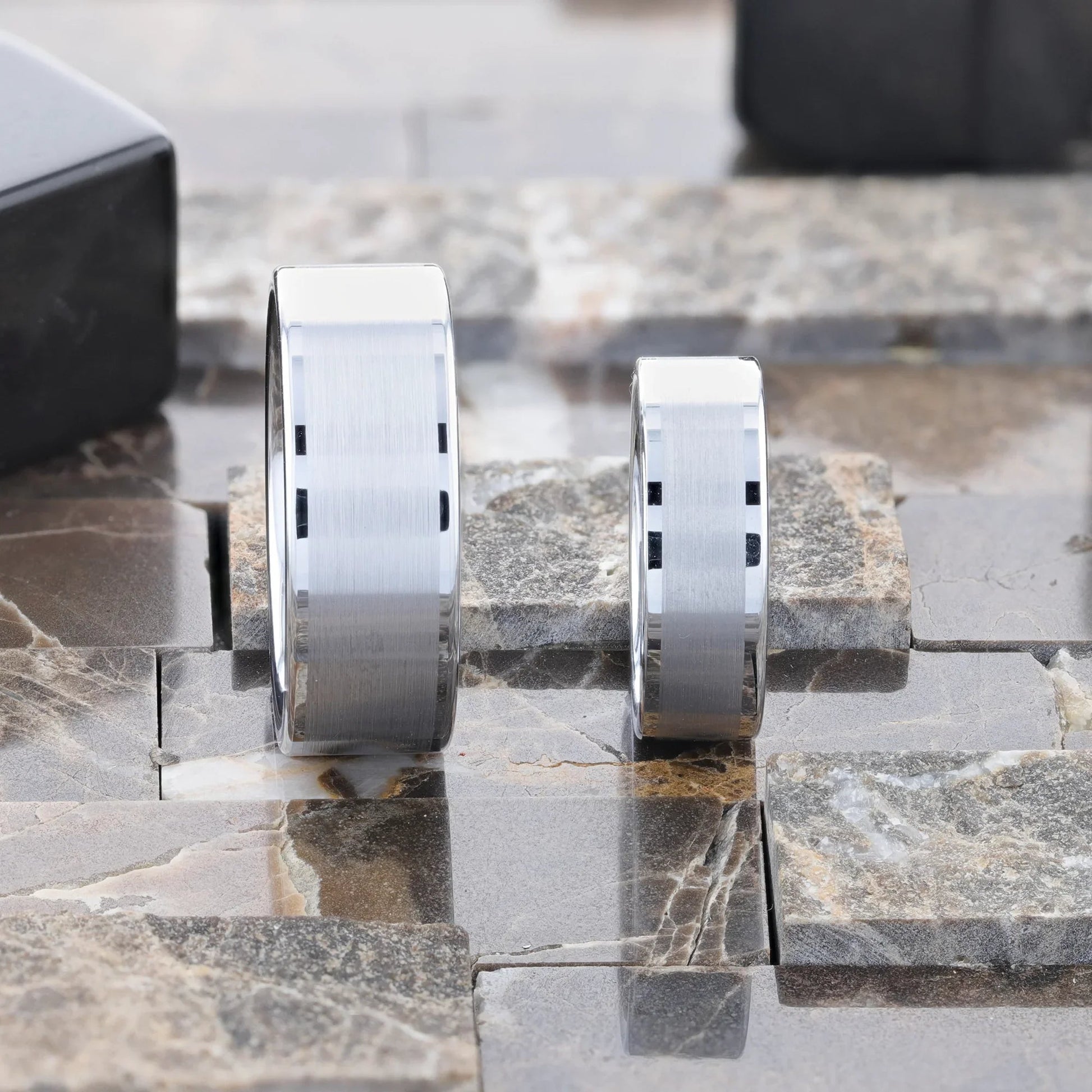 AIRES Flat Brush Finish Center Tungsten Carbide Ring - 4mm - 10mm