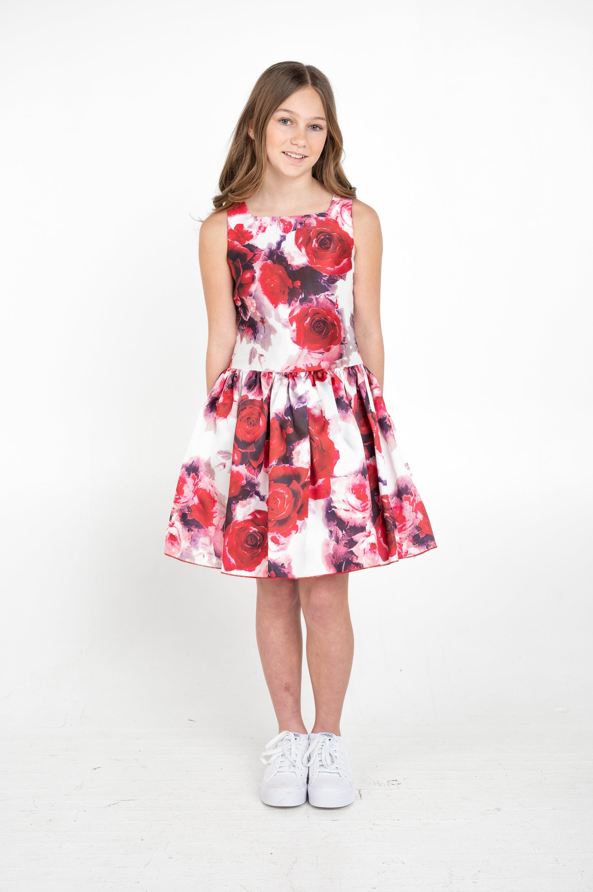 - Zoe "Alexandra" dress featured in a vivid rose print