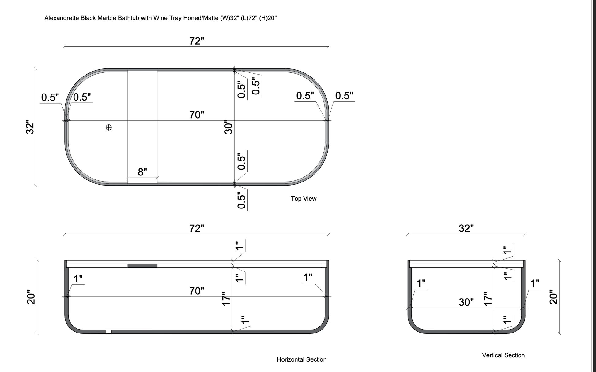 Alexandrette Black Marble Bathtub with Wine Tray Honed/Matte (W)32" (L)72" (H)20" offers,