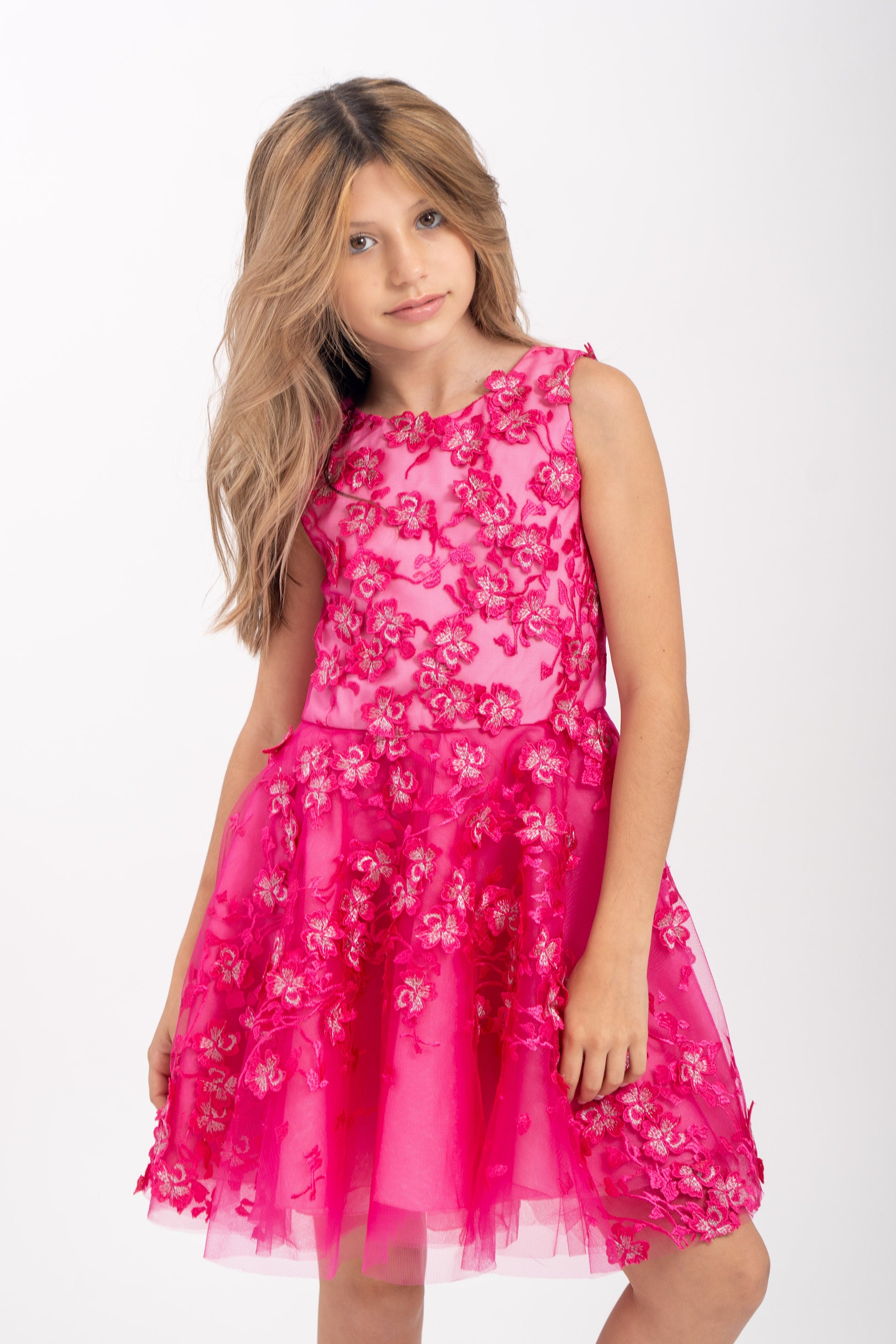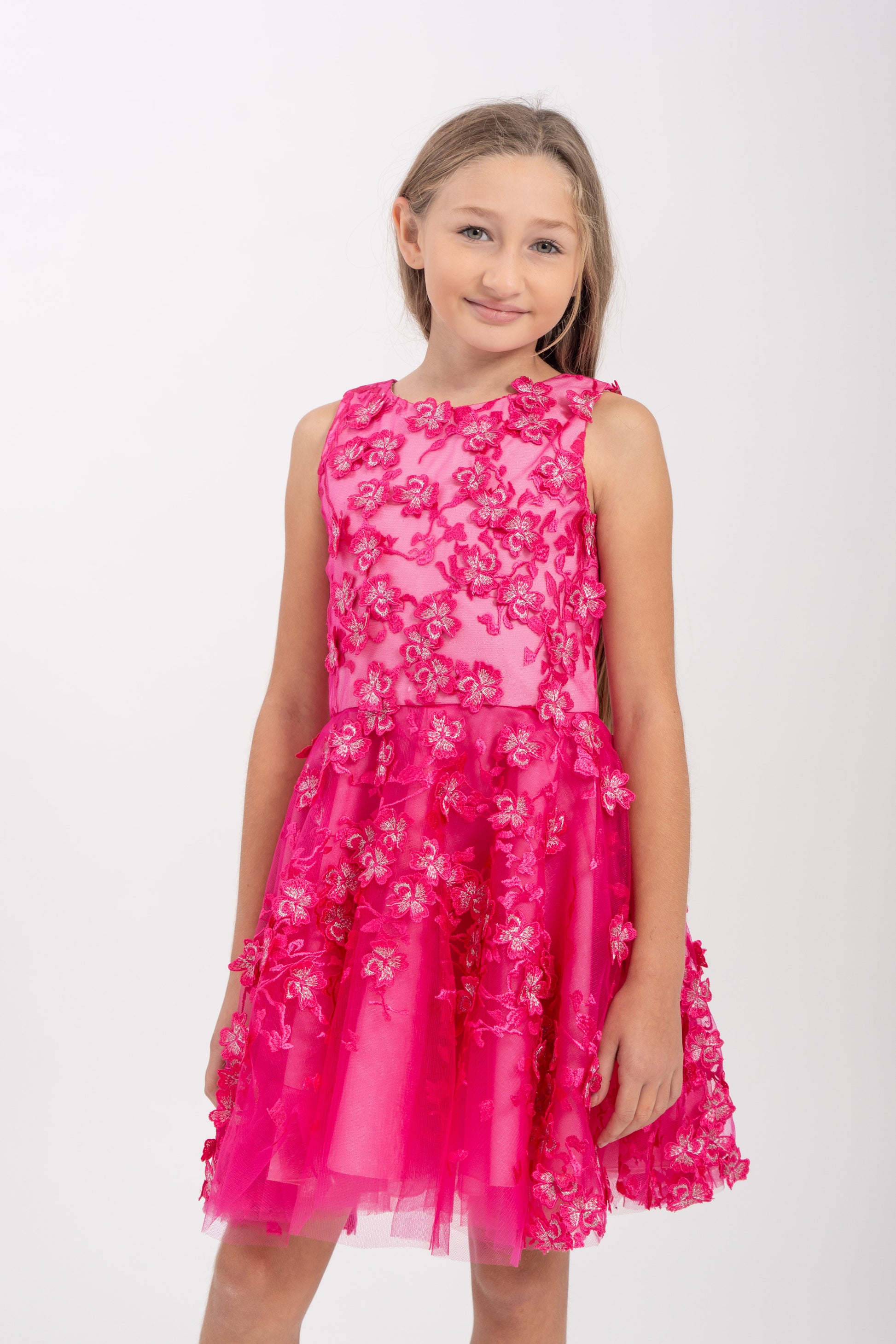 - Zoe "Alice" tulle party dress adorned with 3D floral appliqués