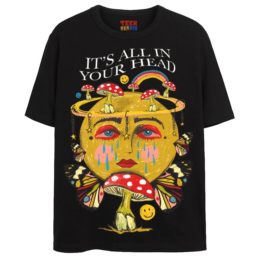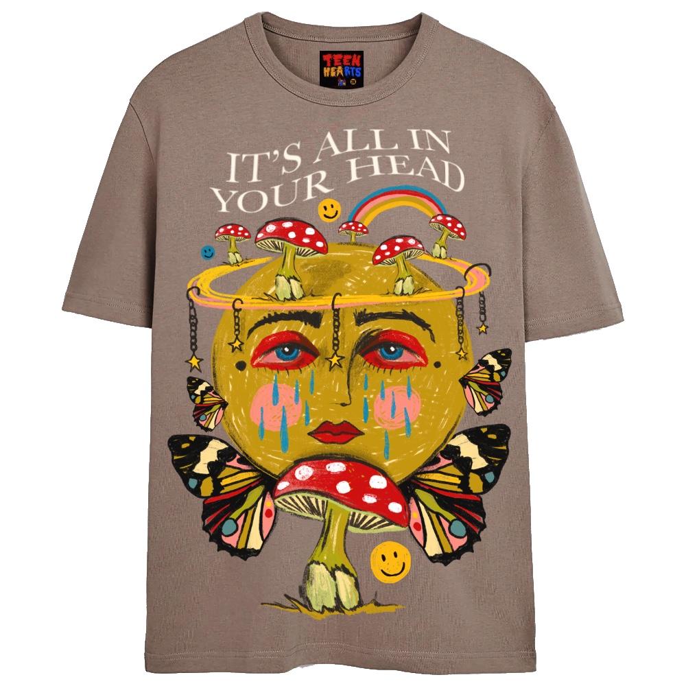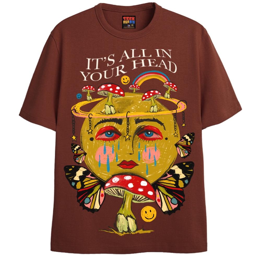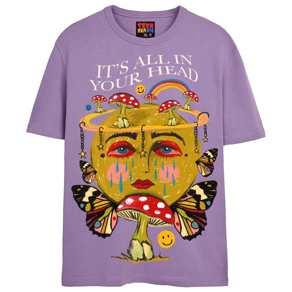 TAN + BLACK + BROWN + LAVENDER - ALL IN YOUR HEAD - super soft and comfy short sleeve tee