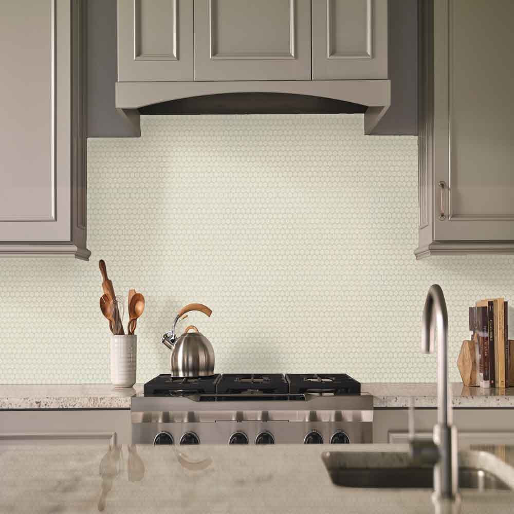 MSIs Almond Glossy Penny Round porcelain tile is a nod to retro with a contemporary twist, featuring a warm-toned neutral cream color that complements almost any design scheme. Its classic yet on-trend pattern and glossy finish create visual interest without overpowering perfect for updating kitchens and baths. A welcomed addition to both homes and light use commercial spaces, use it as wall tile, bathroom or kitchen backsplash tile, or on floors or countertops.These tiles are mounted on mesh-backed sheets for simplified installation and a professional finish.