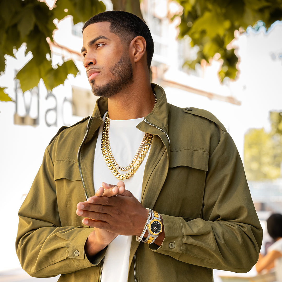 Introducing the Silver Halo 41mm Ambassador. Designed in a two-tone silver and gold combination. Featuring our new waffle face dial powered Swiss quartz movement. This multi-piece case and bezel come in a brushed silver finish with light yellow gold center links and bezel. This watch features a butterfly deployment clasp with an interchangeable steel strap. There are only 100 pieces made of this limited edition collectible timepiece, all individually numbered on the back.