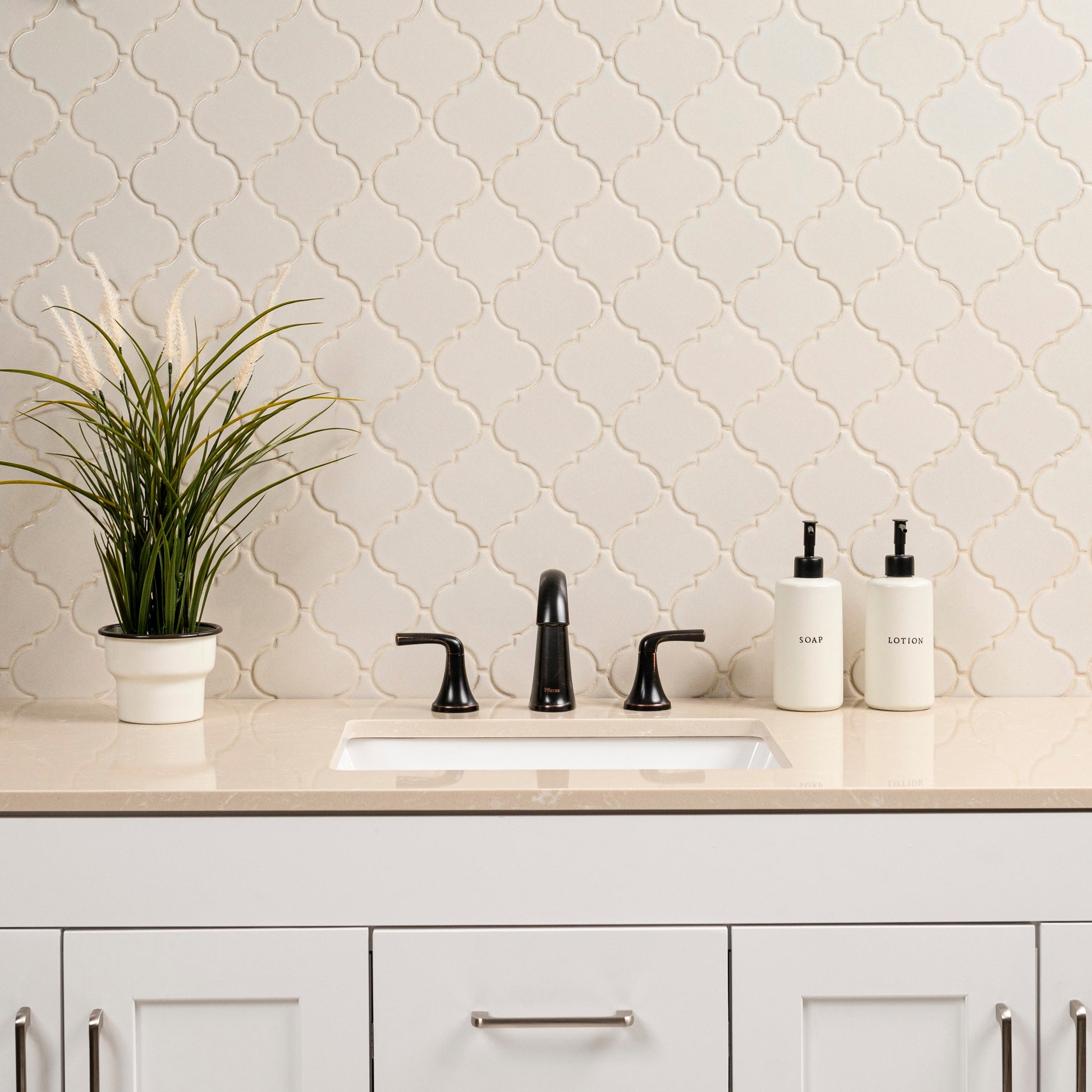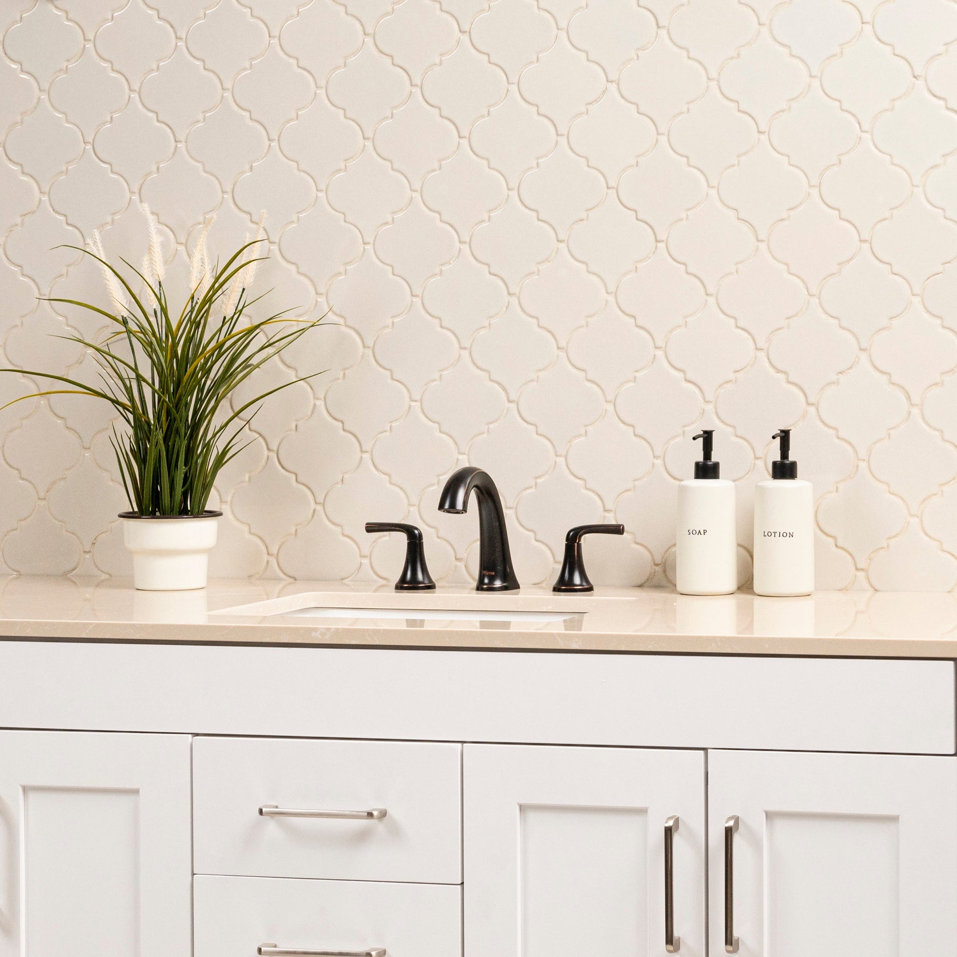 Antique White Arabesque 10.83" x 15.5" Glazed Ceramic Mesh-Mounted Mosaic Wall Tile Pattern- MSI Offers,