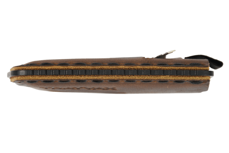The Trayvax Ascent in Black Mississippi Mud, is a tough, front pocket wallet that’s with you for the long haul. The Ascent boasts a single, stainless steel plate, notched on both sides for a comfortable grip. Top grain, oil-tanned leather is carefully hand-stitched through the steel plate and secured in place with brass rivets. Carry only what you need on your journey with this slim, dual-slot credit card holder. Over time, the leather will form around the contents of your wallet and develop a patina unique to your lifestyle.