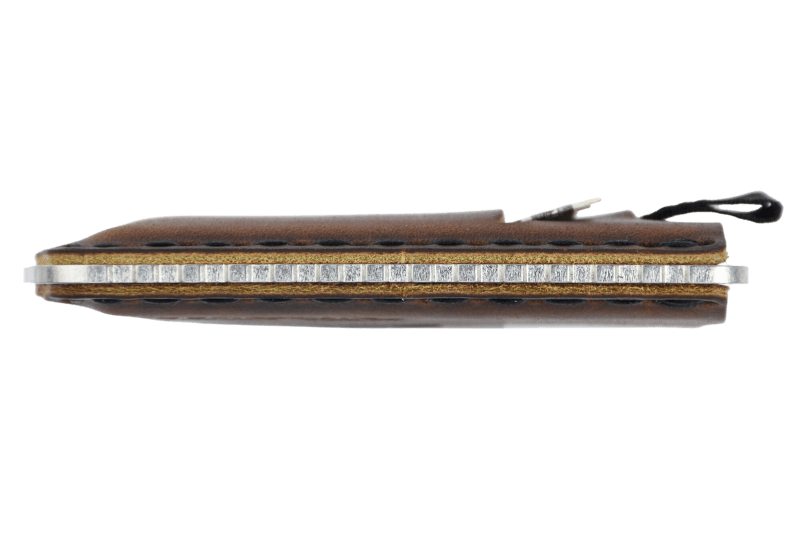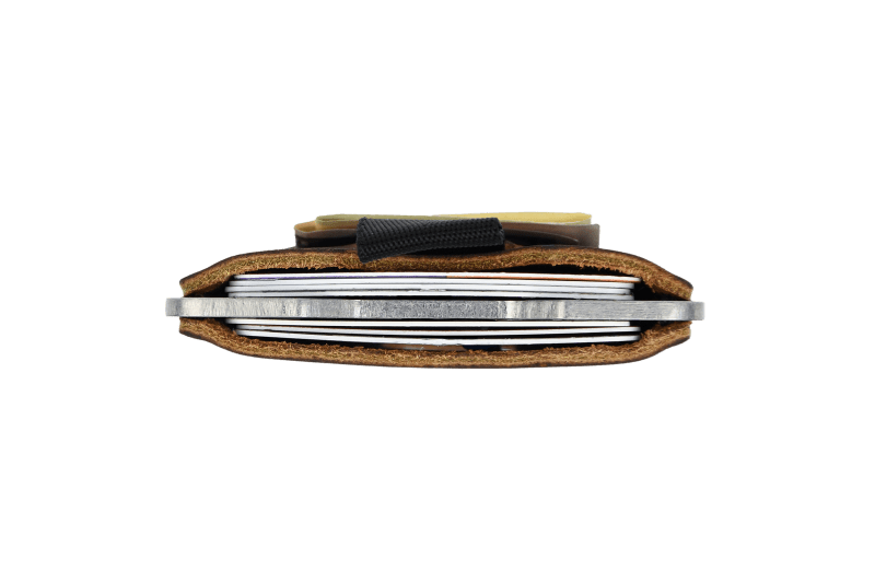 The Trayvax Ascent in Raw Mississippi Mud, is a tough, front pocket wallet that’s with you for the long haul. The Ascent boasts a single, stainless steel plate, notched on both sides for a comfortable grip. Top grain, oil-tanned leather is carefully hand-stitched through the steel plate and secured in place with brass rivets. Carry only what you need on your journey with this slim, dual-slot credit card holder. Over time, the leather will form around the contents of your wallet and develop a patina unique to your lifestyle.