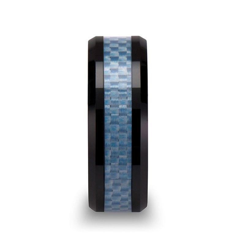 ATTICUS Beveled Blue Carbon Fiber Inlaid Black Ceramic Ring - 8mm
