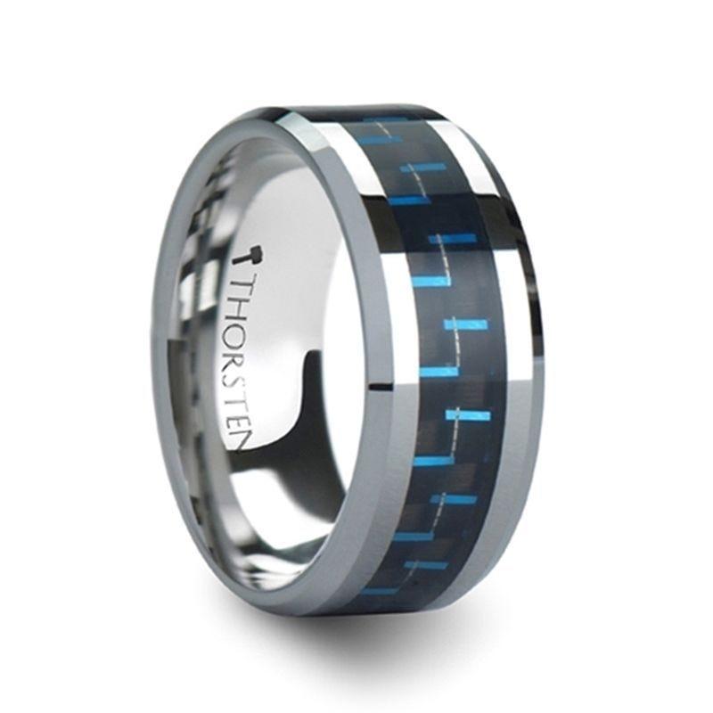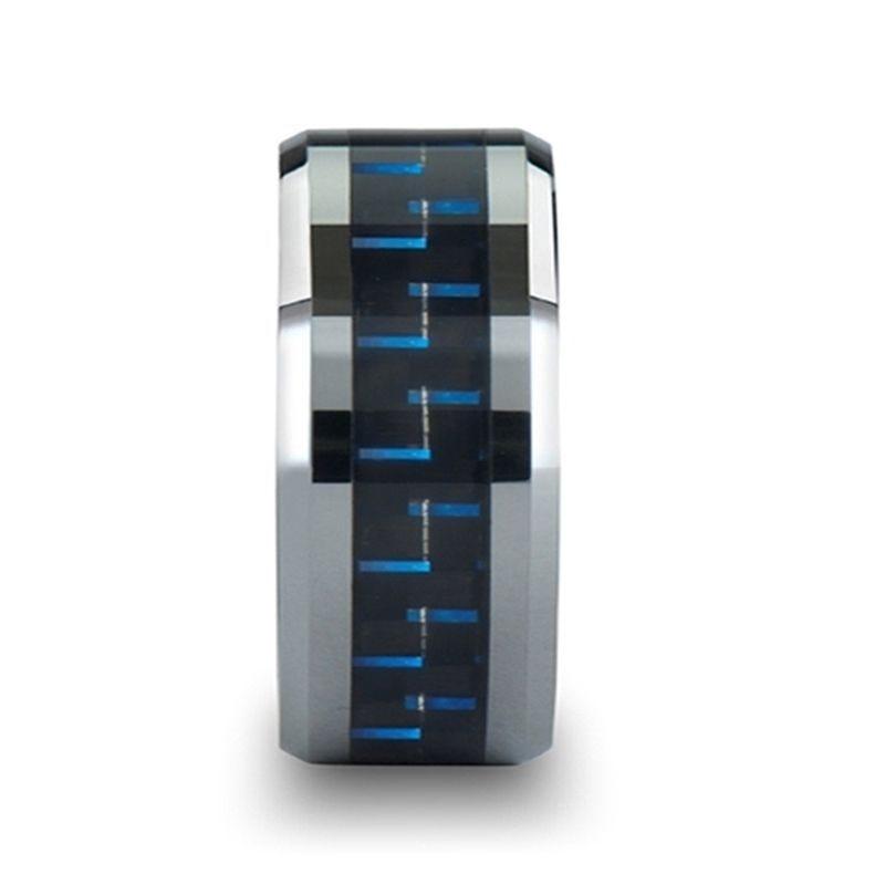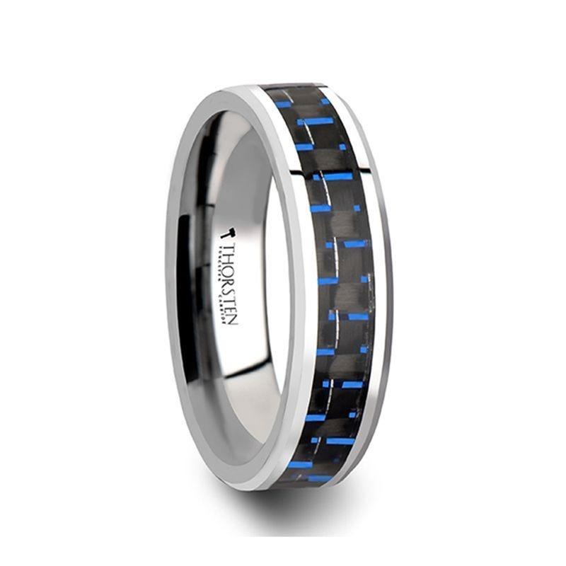 AUXILIUS Tungsten Carbide Ring with Black and Blue Carbon Fiber Inlay - 6mm - 10mm