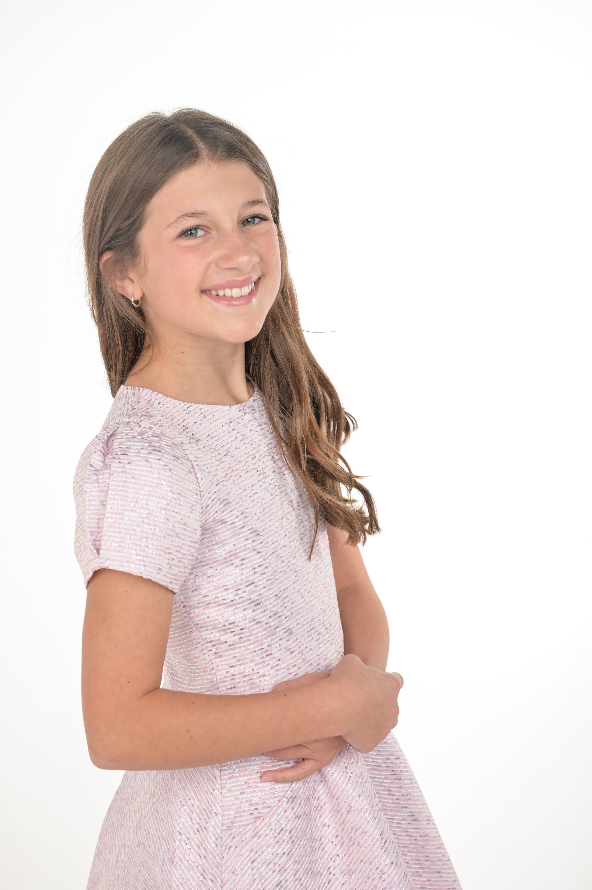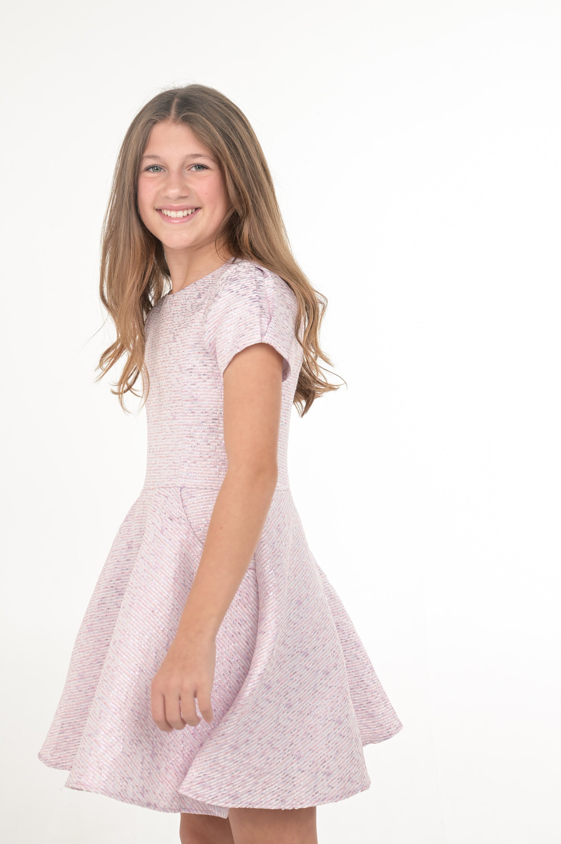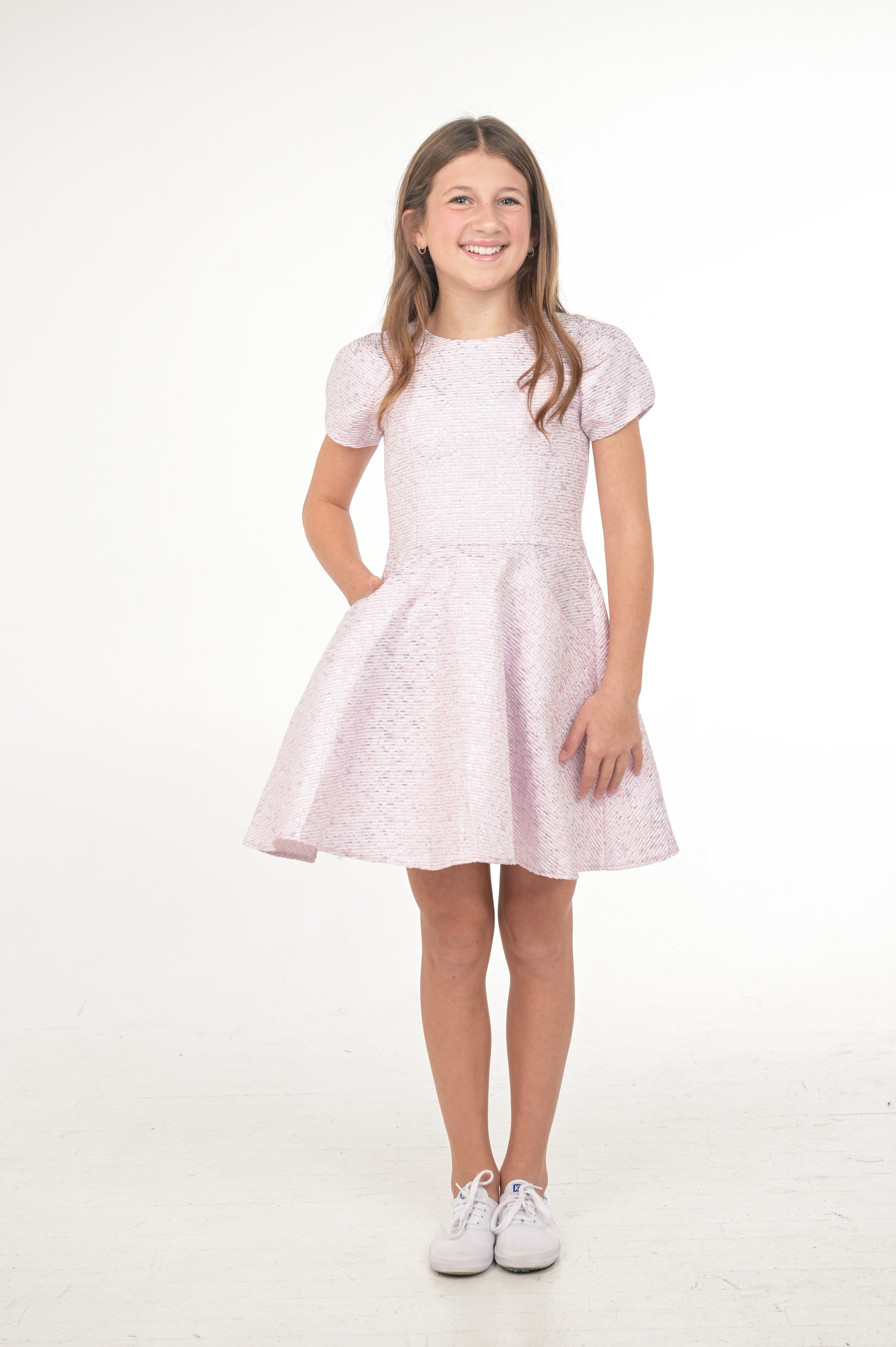 - Zoe "Ava" jacquard dress defined by a full circle skirt