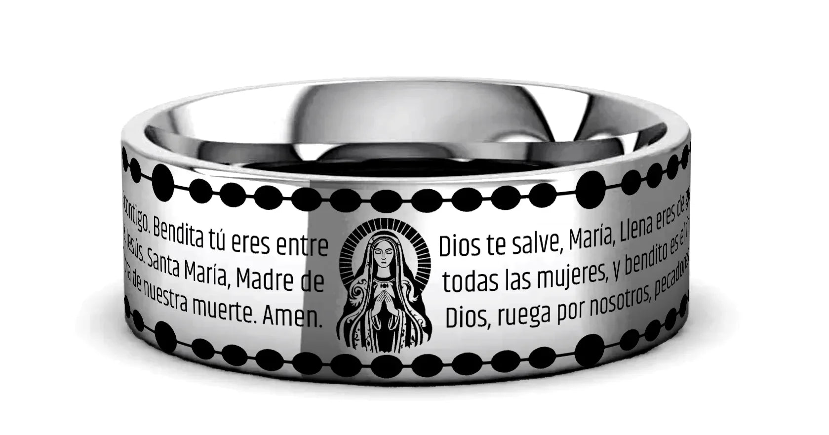 AVE MARÍA Grabada en un Anillo de Carburo de Tungsteno