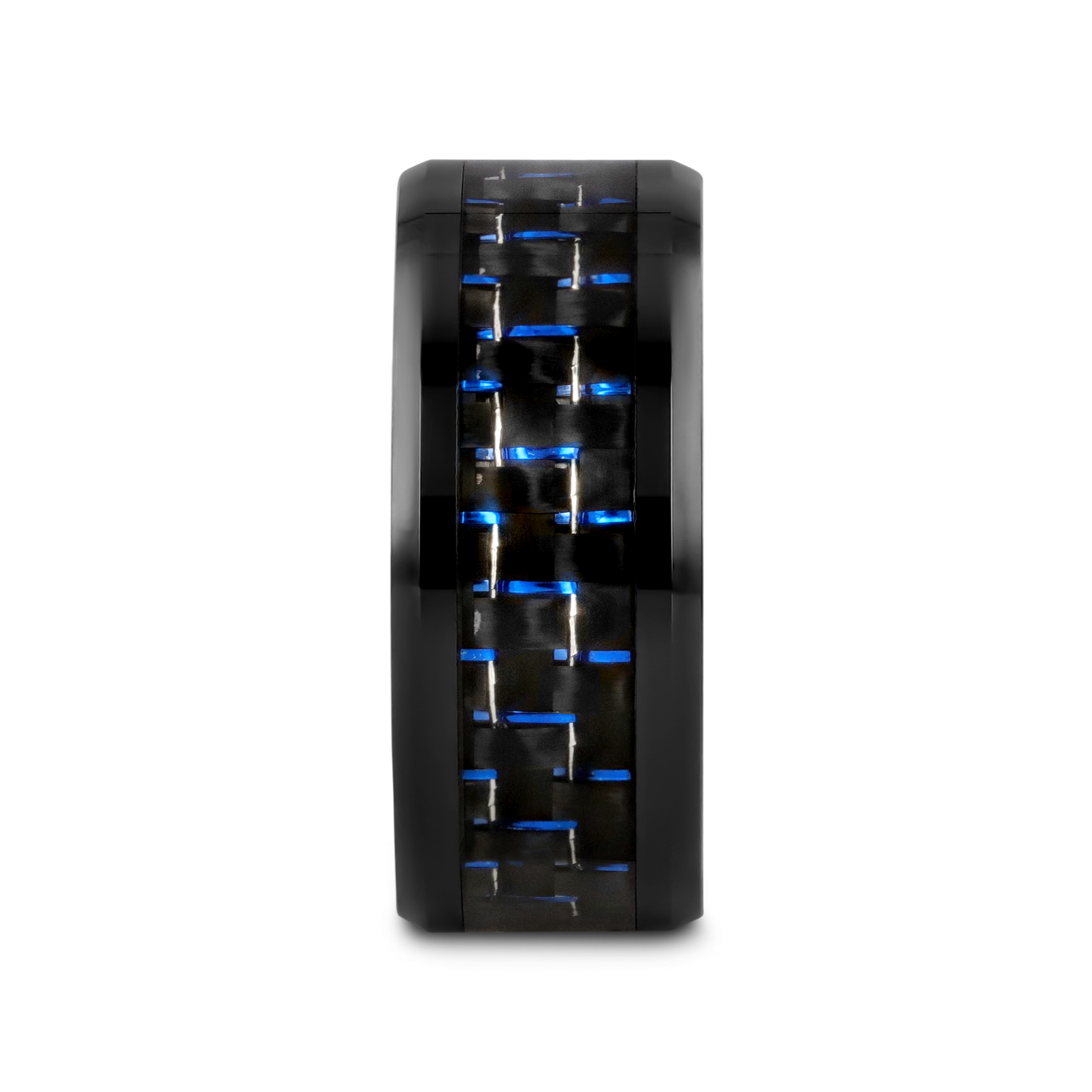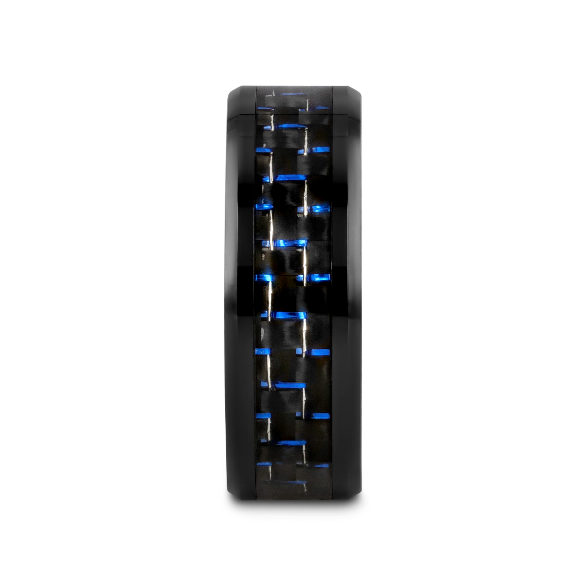 AVITUS Black Beveled Ceramic Ring with Blue and Black Carbon Fiber Inlay - 4mm - 10mm