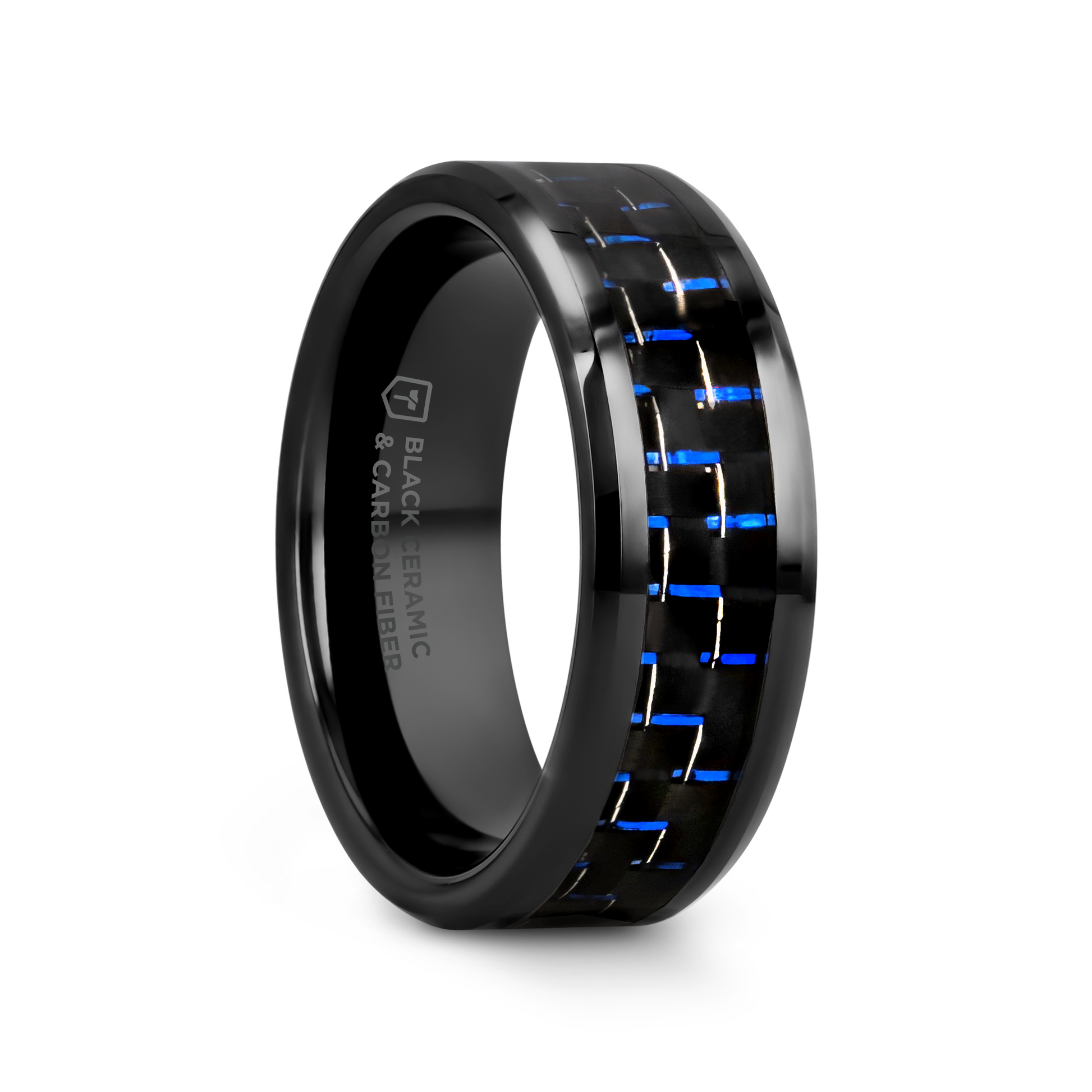 AVITUS Black Beveled Ceramic Ring with Blue & Black Carbon Fiber Inlay - 4mm - 10mm