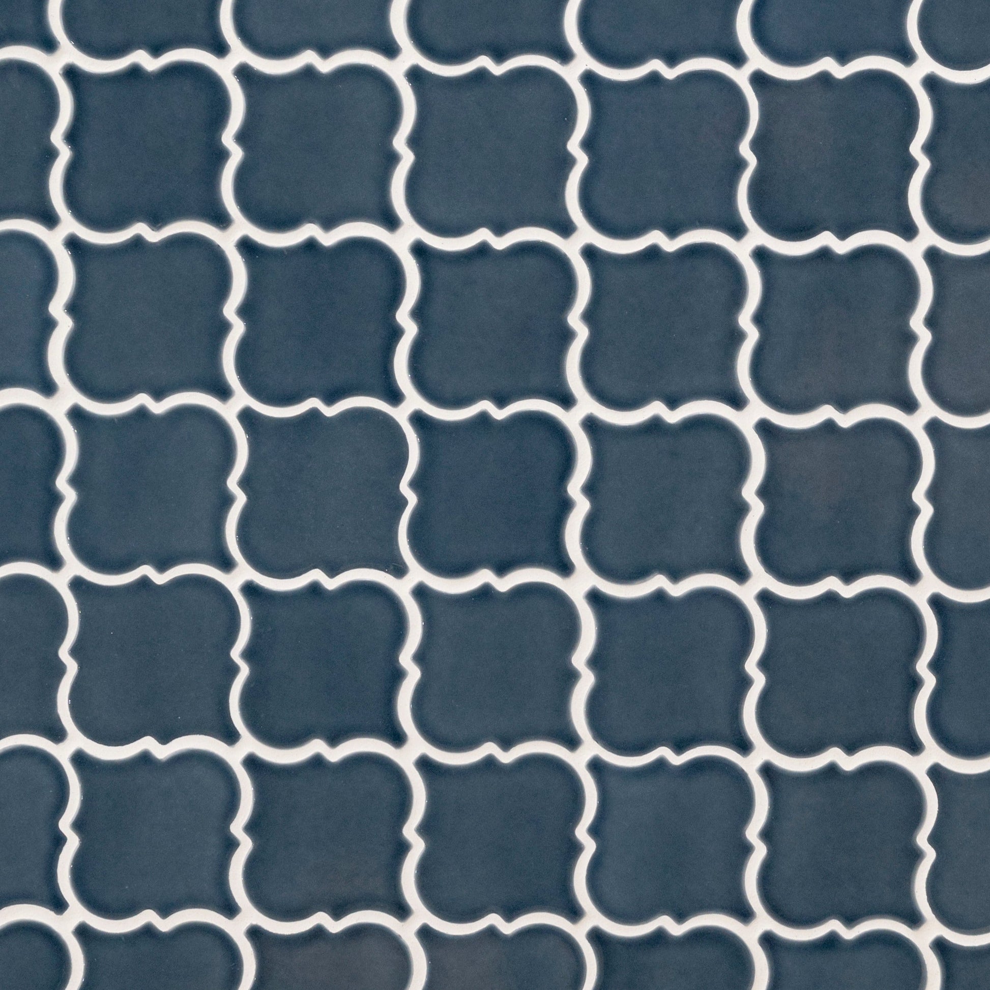 Bay Blue Arabesque 10.83"x15.50" Ceramic Mesh-Mounted Mosaic Tile - MSI Collection