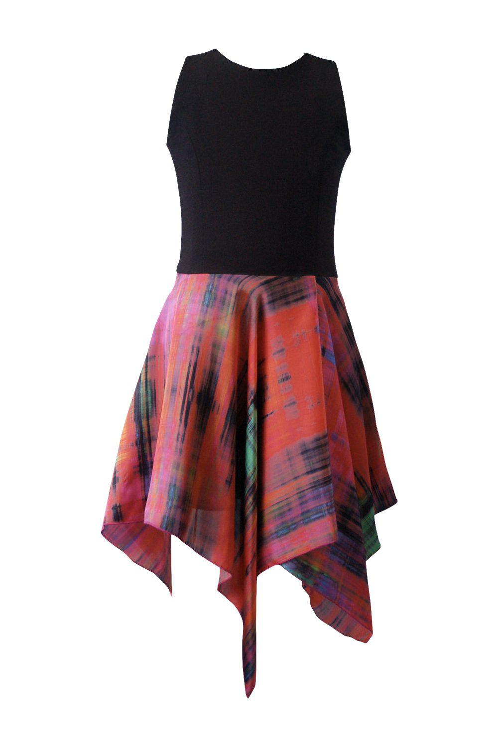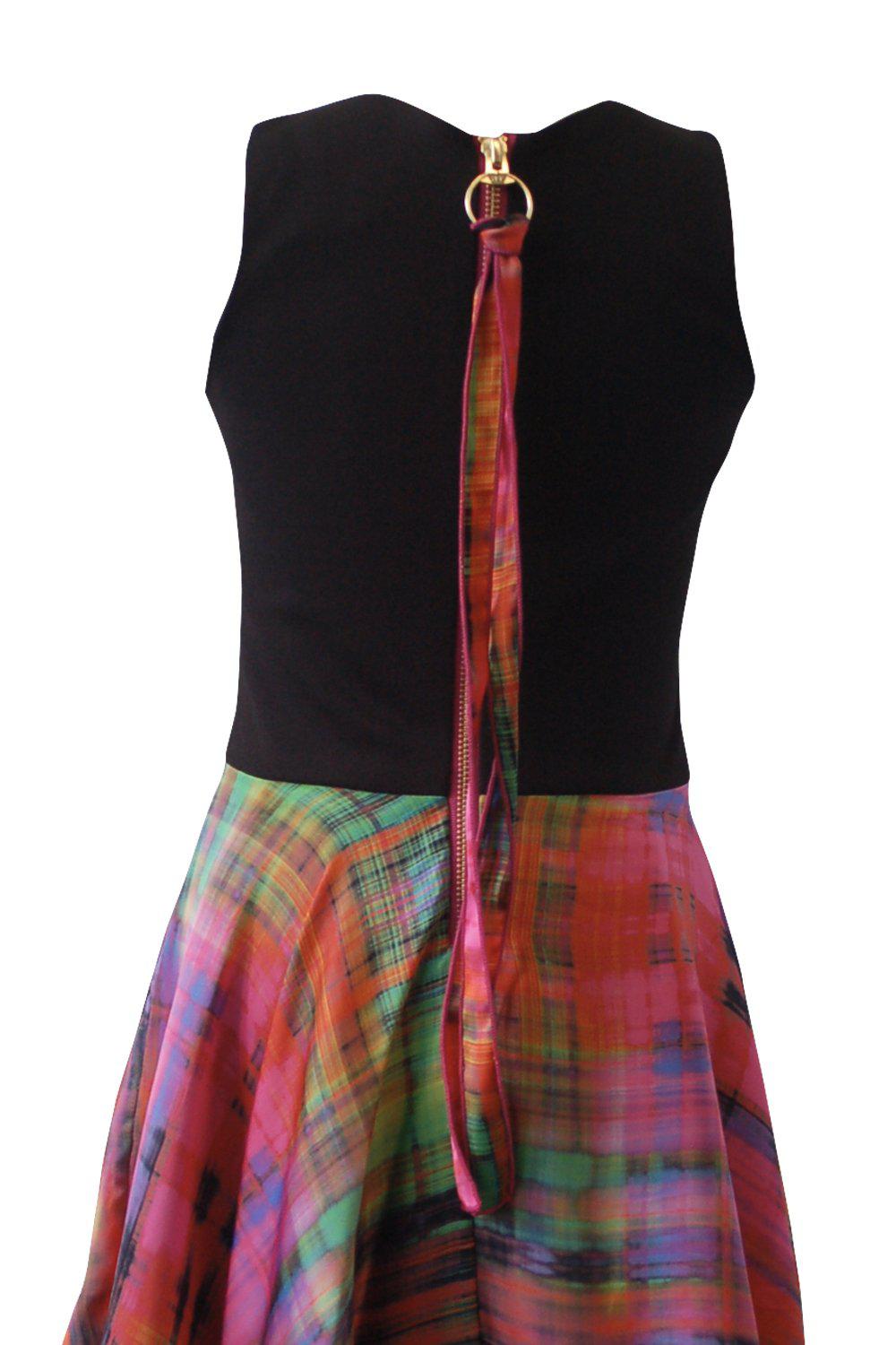 - Zoe "Bayadere" dress with solid bodice and stripe skirt.