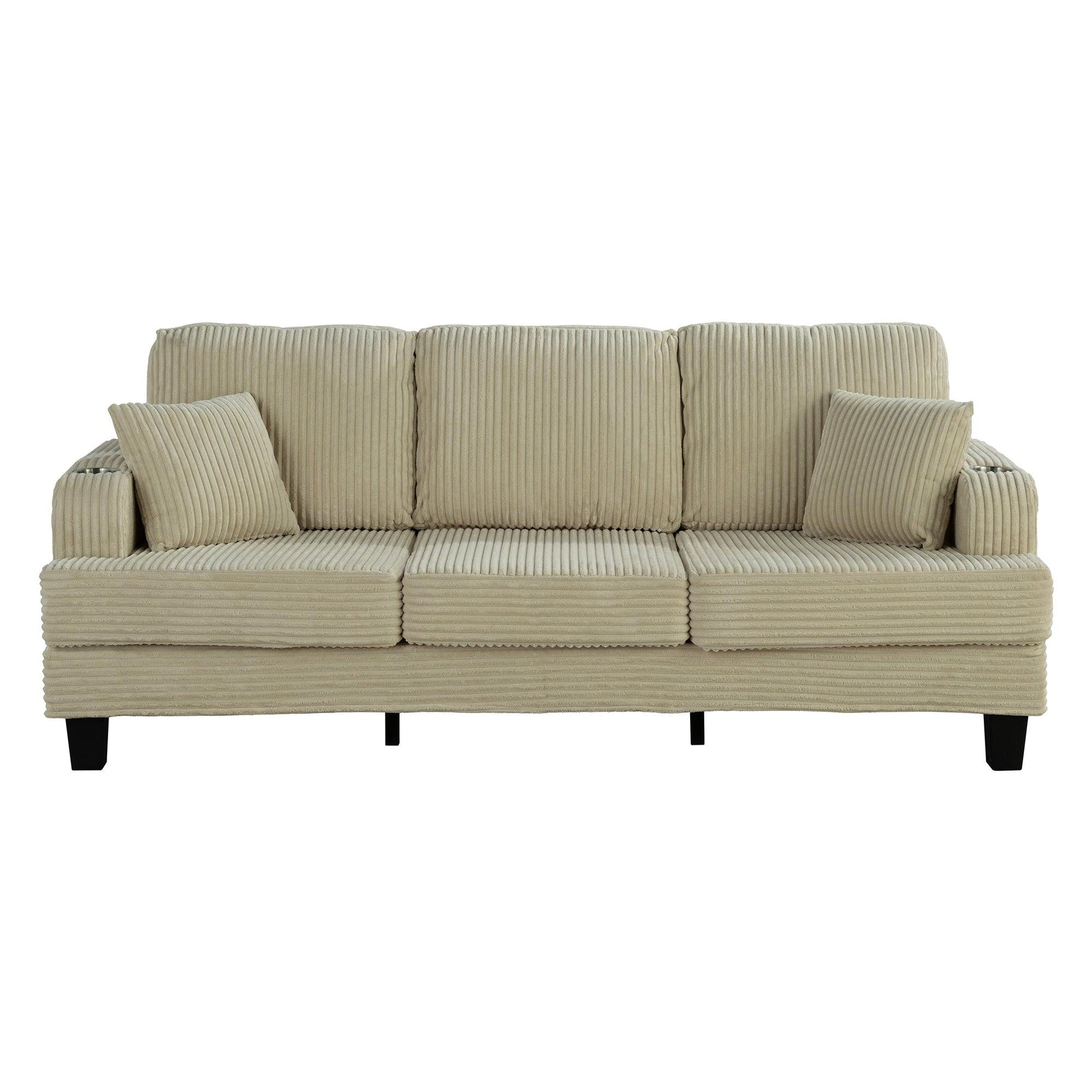 Beige 3 Piece Set Comfy Sofa Couch 3-Seater & Loveseat Sofa with Storage Ottoman with USB
