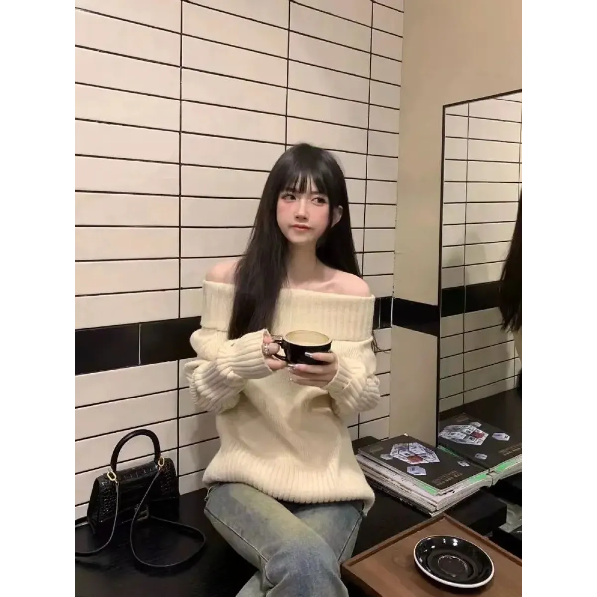 Pair this sweater with high-waisted jeans or a pleated midi skirt for a refined yet casual look. Throw on knee-high boots and a trench coat for extra warmth and style. Add statement earrings to enhance the slash neckline’s elegant design.