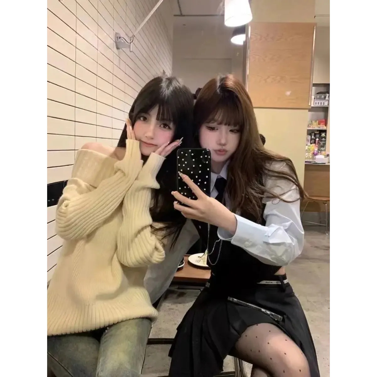 Beige Off Shoulder Knit Sweater – Elegant Harajuku Long Sleeve Pullover