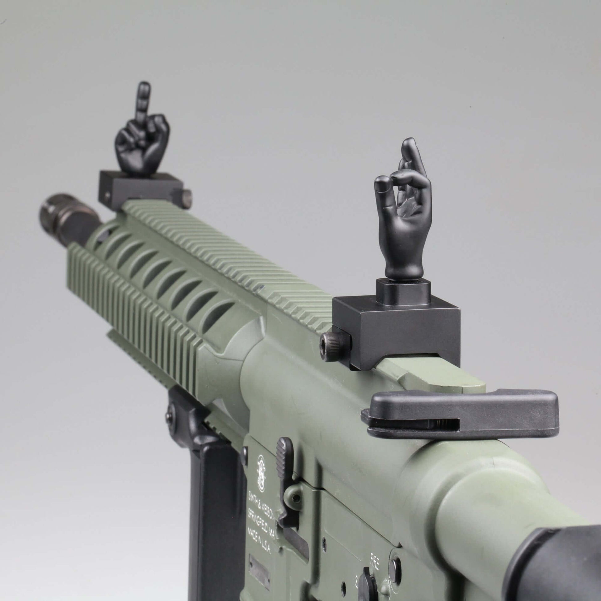 DISCLAIMER: The novelty finger iron sight set sold on this website can be installed on real firearms. However, it is important to note that this product is intended for novelty and entertainment purposes only and should not be relied upon as a serious firearm accessory. We are not responsible for any injuries, damages, or legal issues that may arise from the use of this product as a firearm accessory. Always handle firearms with proper safety precautions and use only accessories that are specifically designed and tested for use with firearms. By purchasing this product, you assume all responsibility for its use and agree to use it responsibly and in accordance with all applicable laws and regulations.