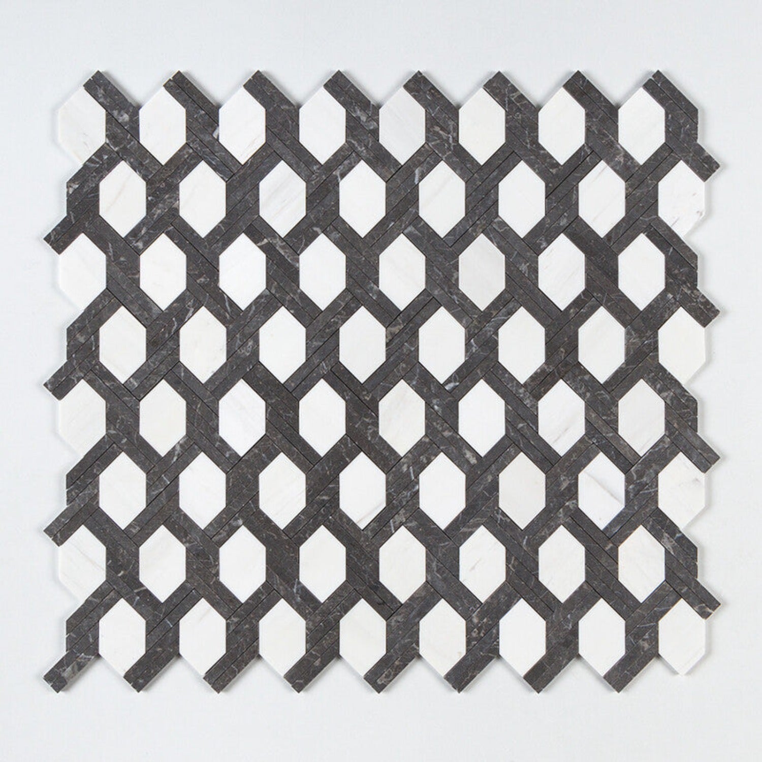 Black Night, Snow White Honed 9 11/16"x16 7/16" Braided Hexagon Marble Mosaic offers;