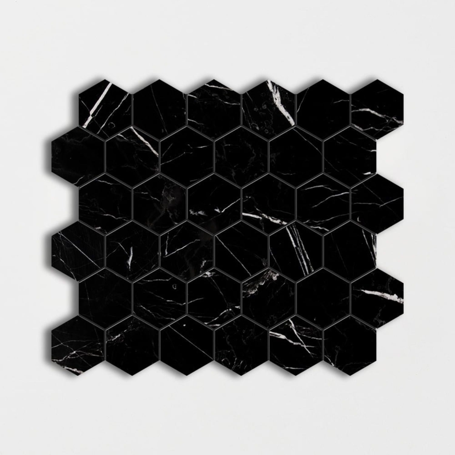 Black Polished 12"x12" Hexagon Marble Mosaic Tile offers;