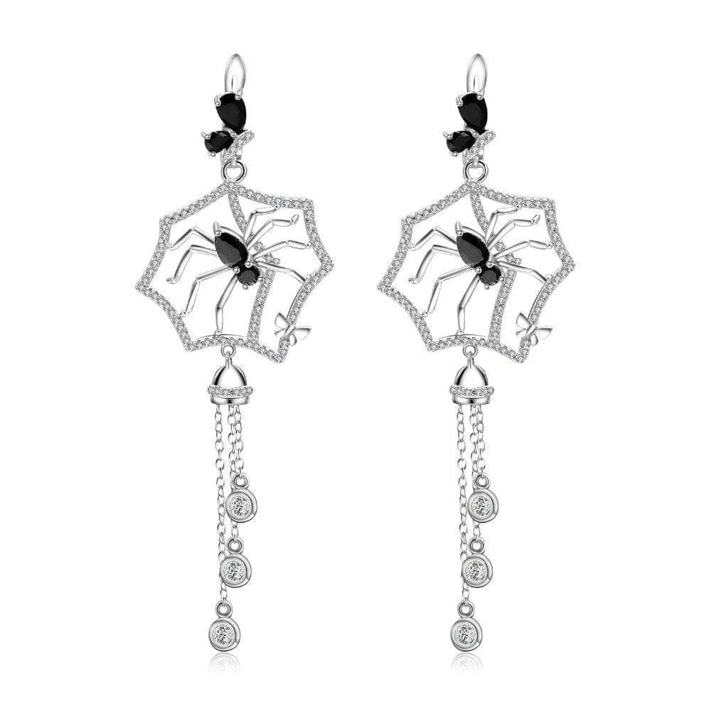 Black Spinel Spider Long Vintage Gothic Drop Earrings