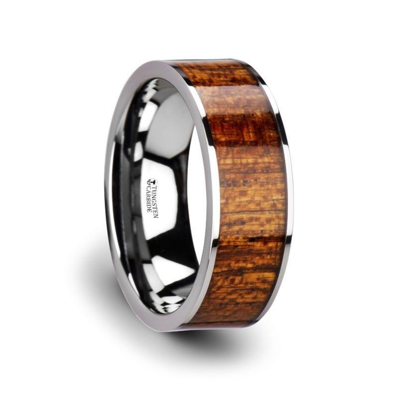 BOLO Flat Tungsten Carbide Band with Exotic Mahogany Hard Wood Inlay and Polished Edges - 8mm