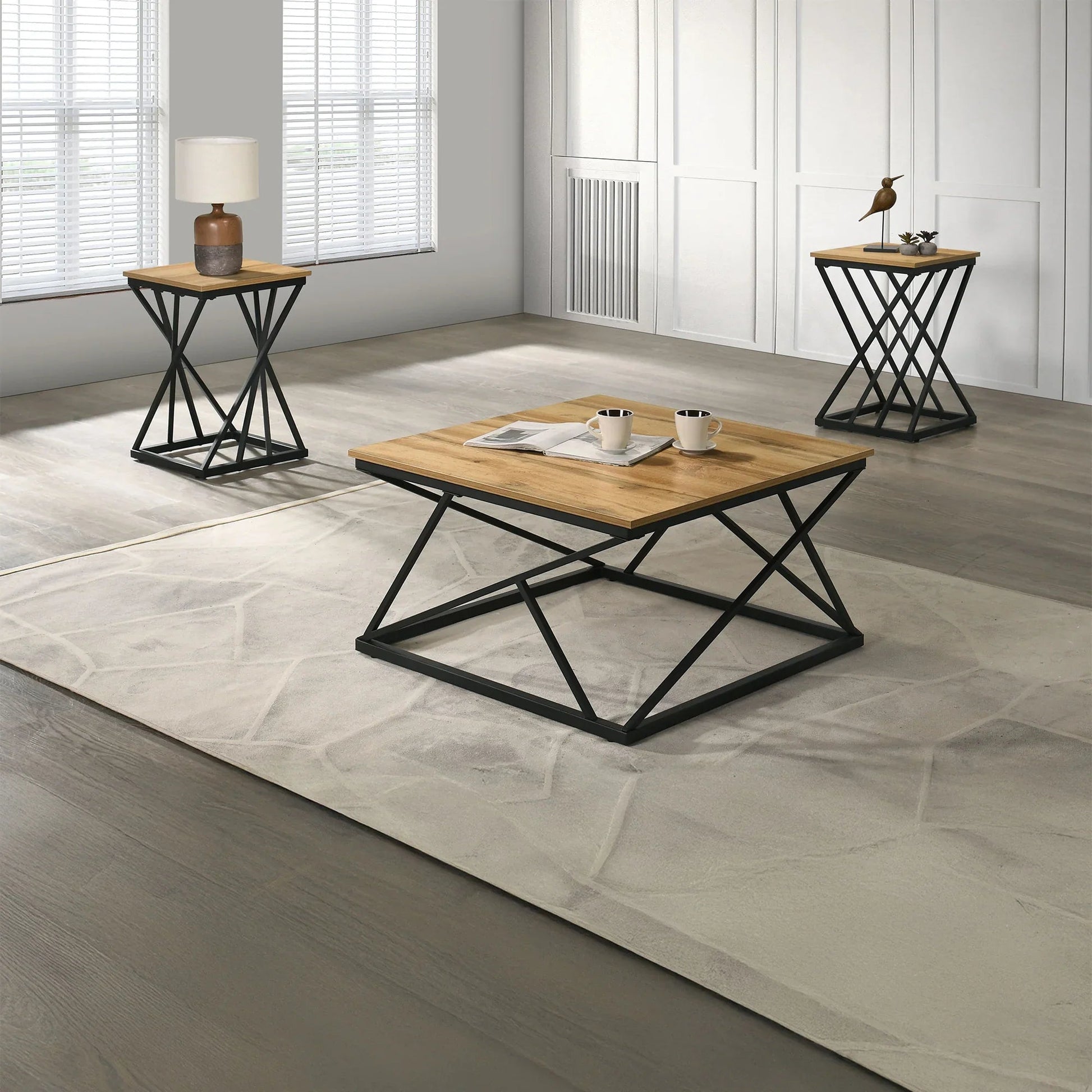 Borup Rustic 31.5" 3-Piece Coffee Table Set with Decorative Wrought Metal Side