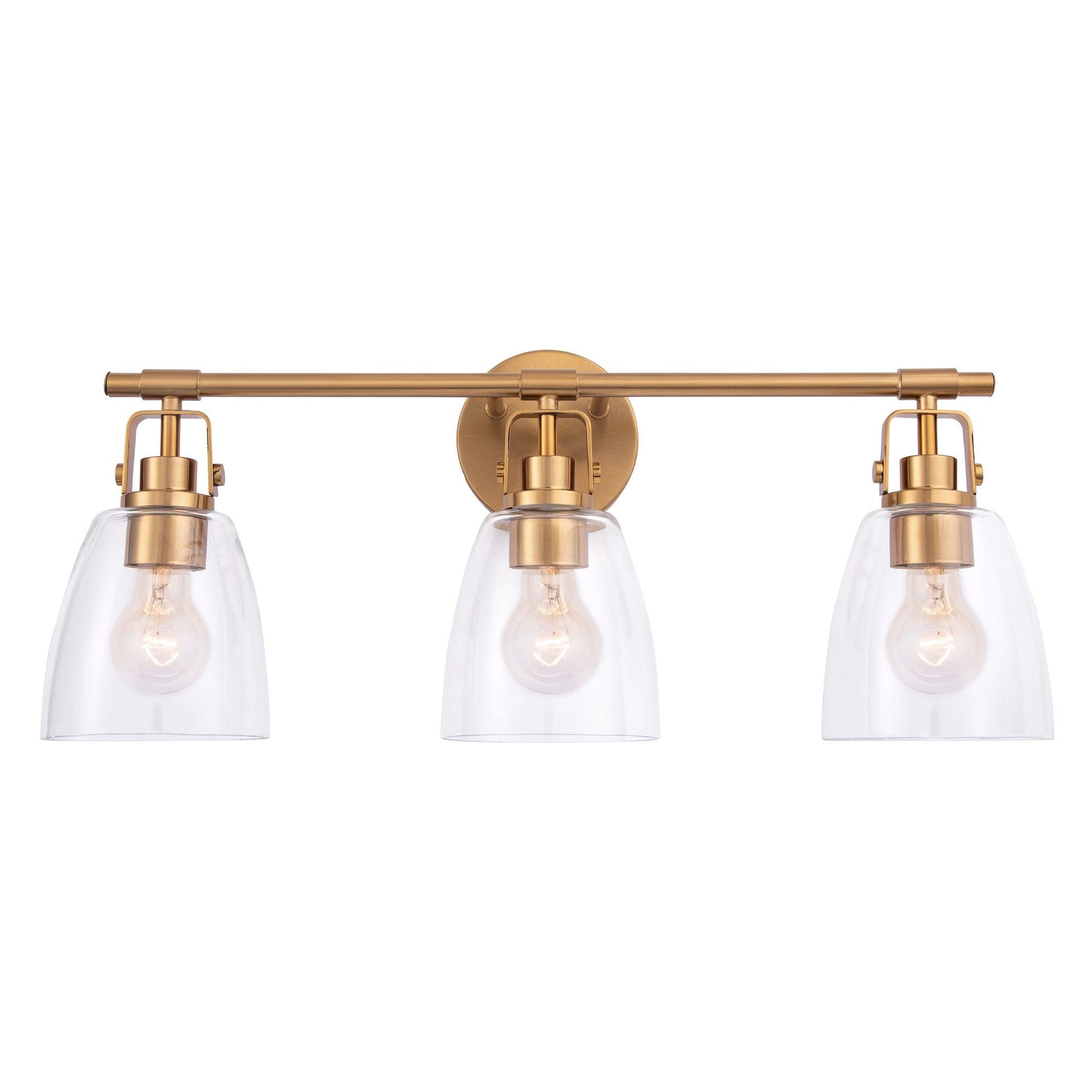 The Brilliance Modern Farmhouse 3-Light Vanity Light is the perfect addition to any home looking for a touch of rustic charm. Made from durable steel, this Vanity Light is built to last and features clear glass shades that provide ample light for your living space.