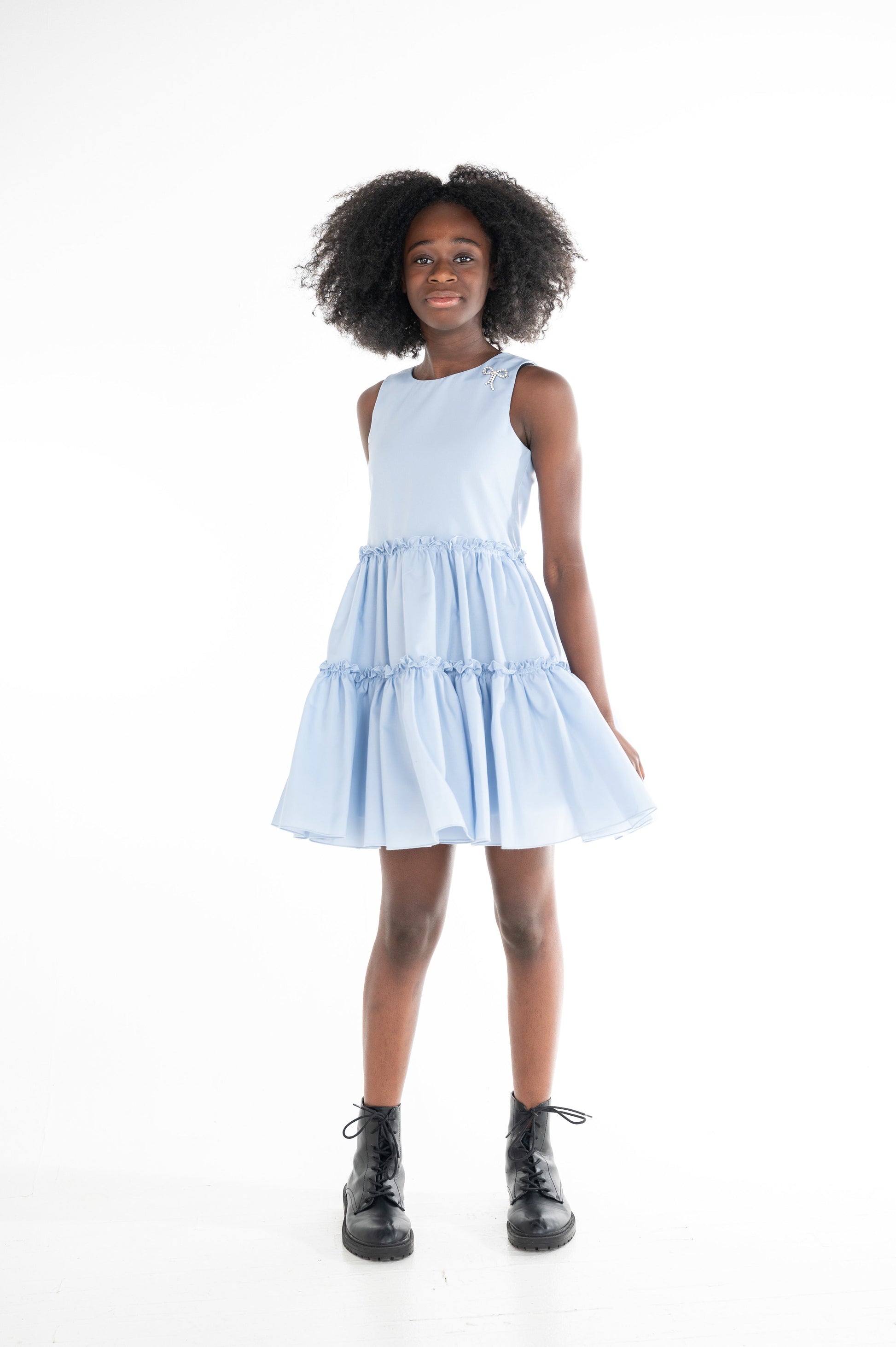 - Zoe "Cassidy" tiered dress with a removable bow crystal broach