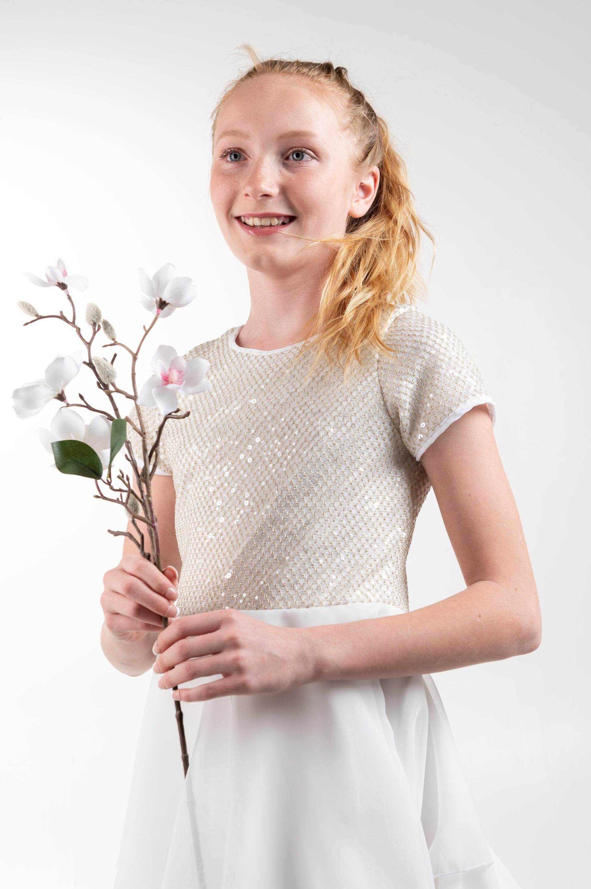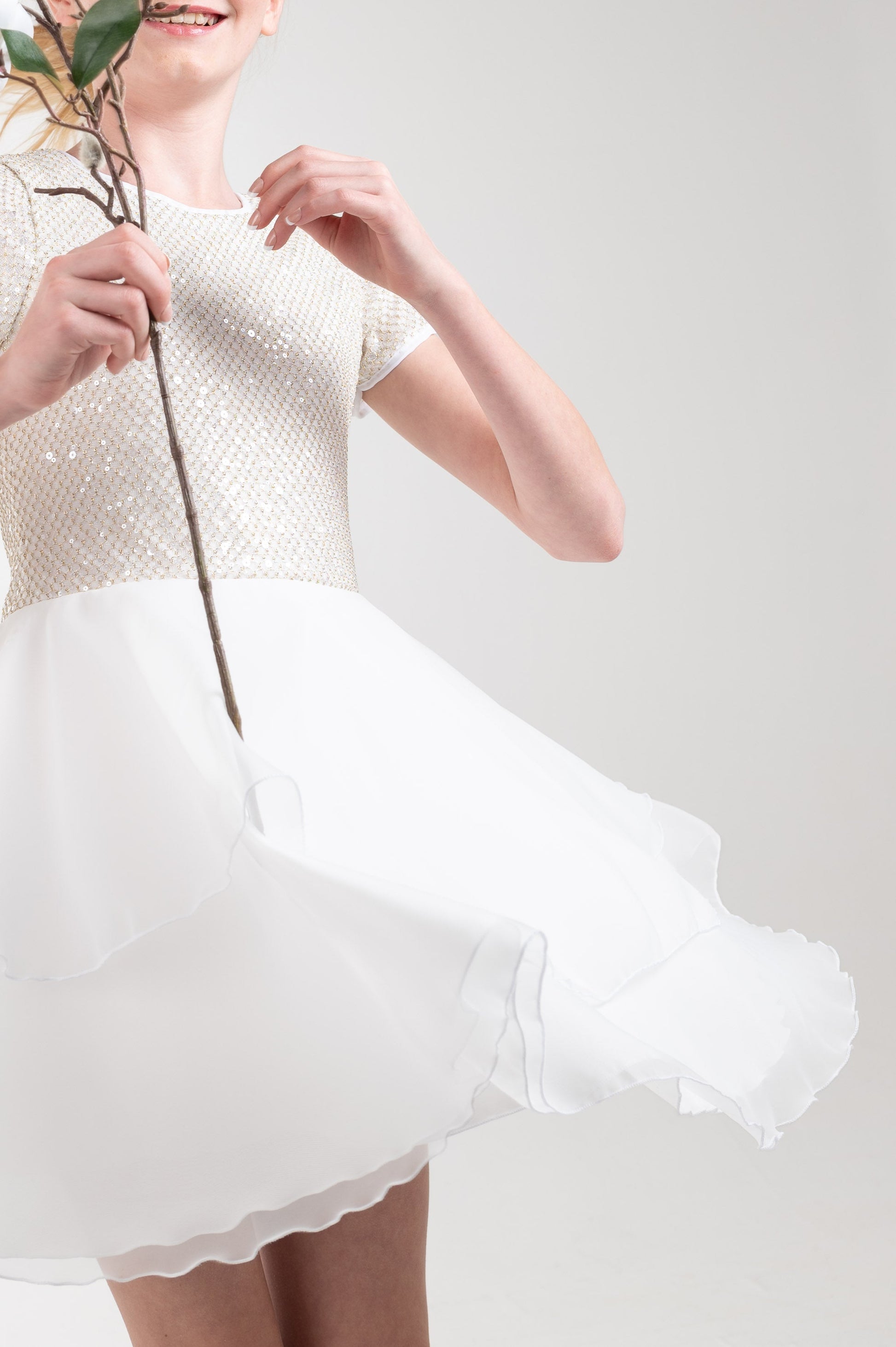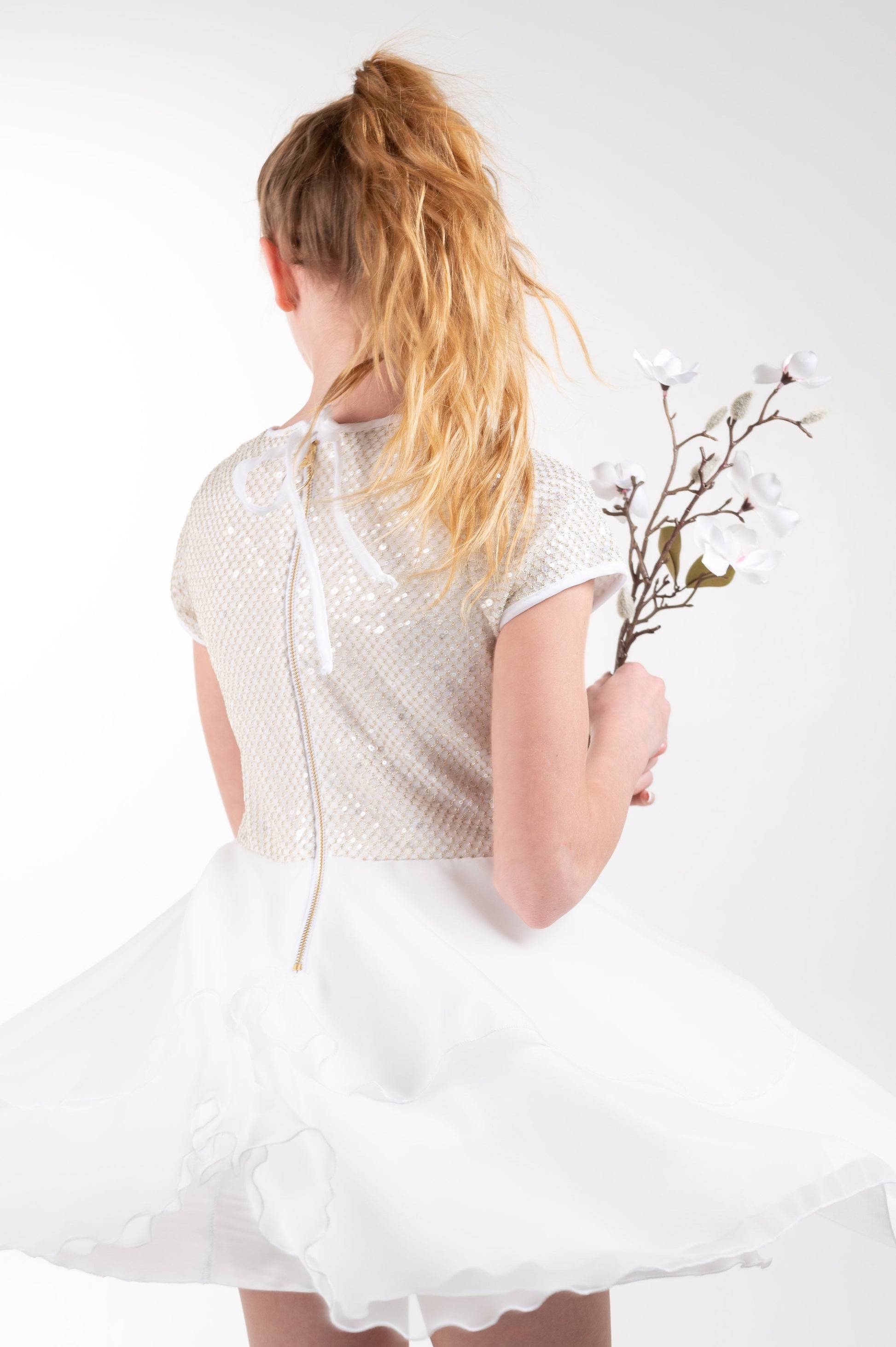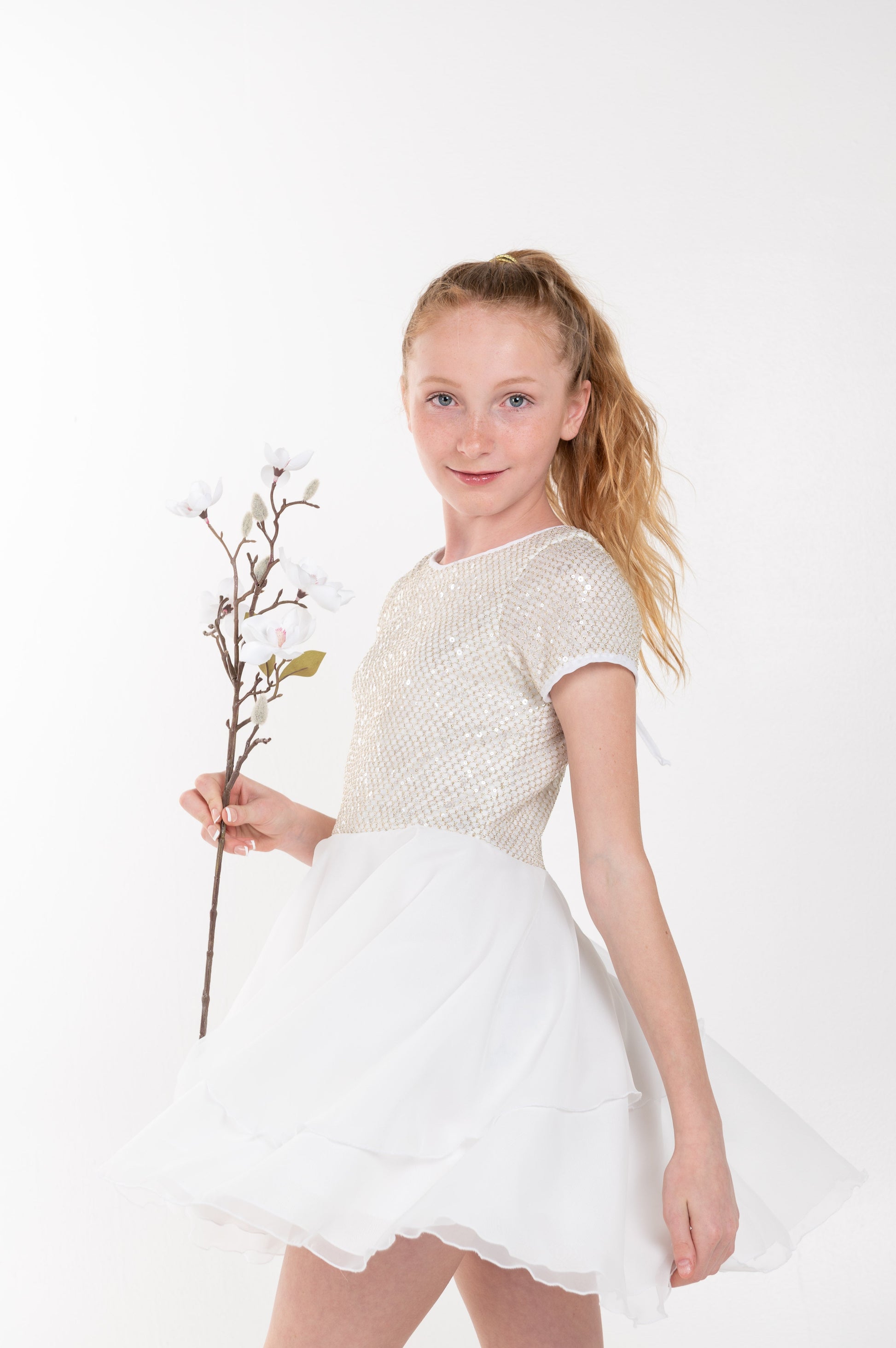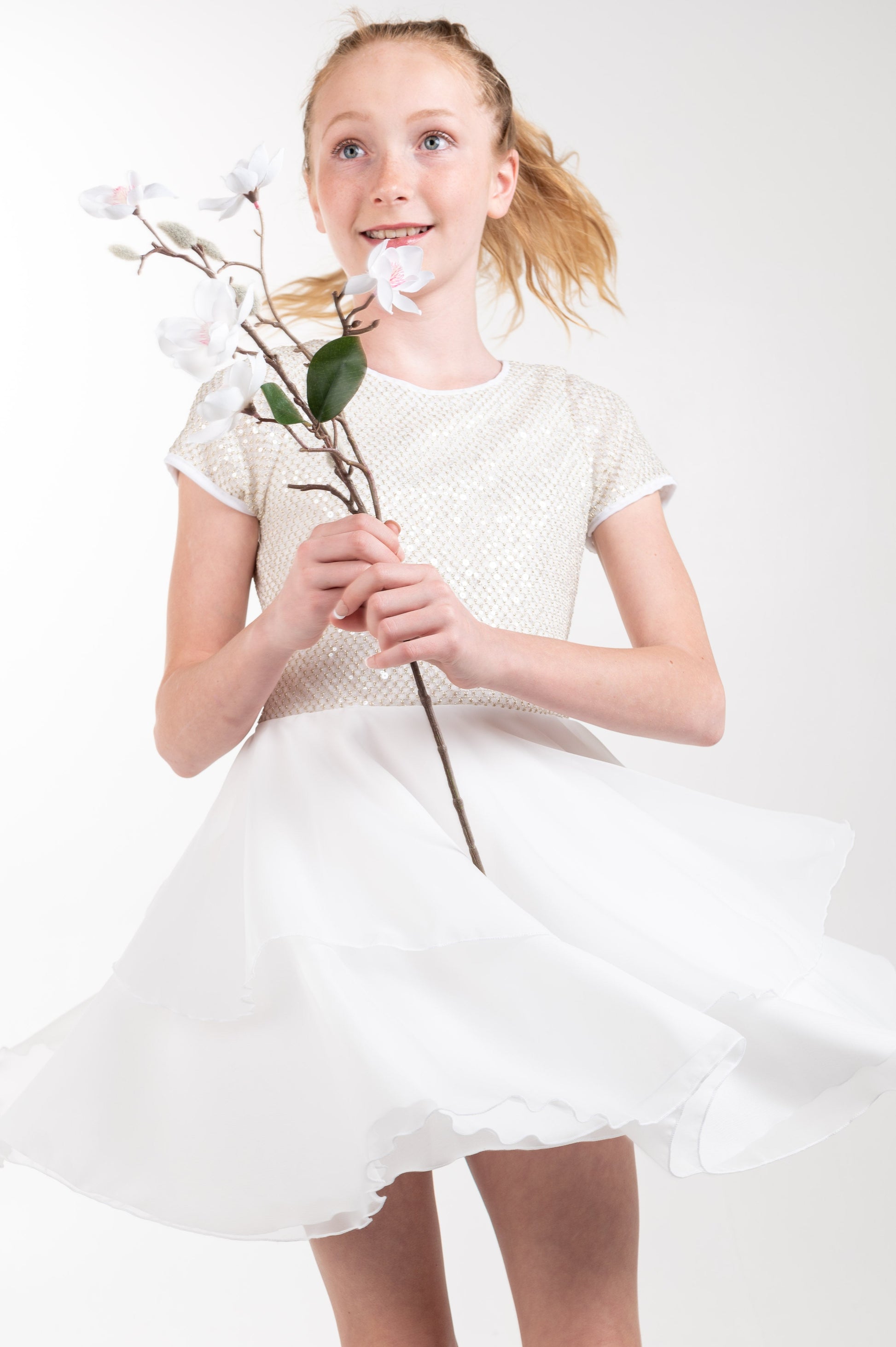 - Zoe "Cecilia" dress features embellished fishnet bodice