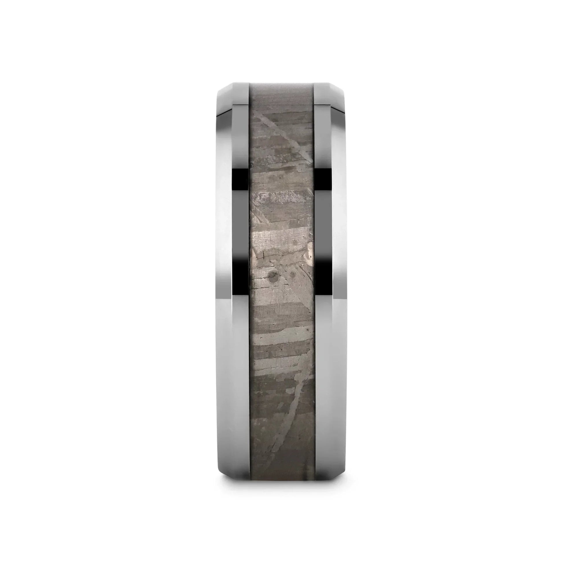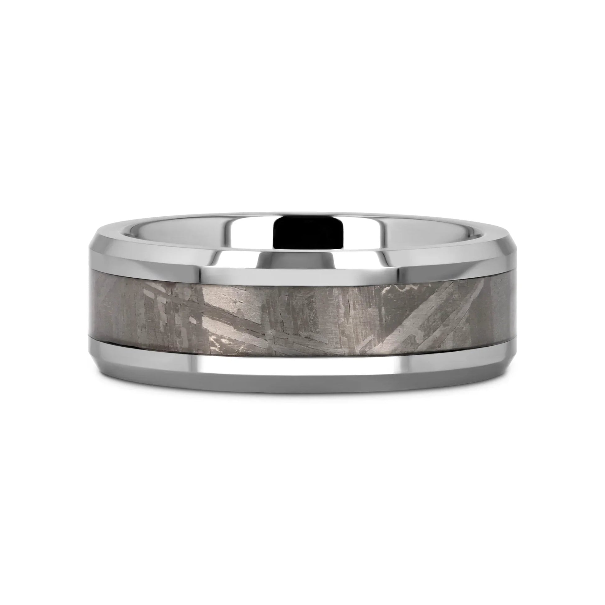Genuine Celestial Meteorite Inlay Tungsten Carbide ring with Flat, beveled edges by Thorsten - 8mm