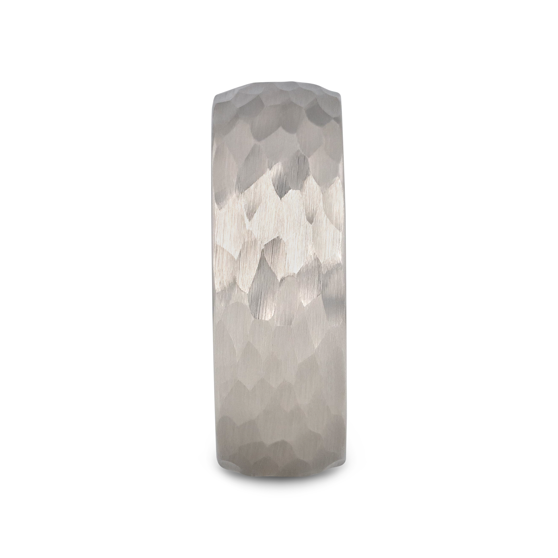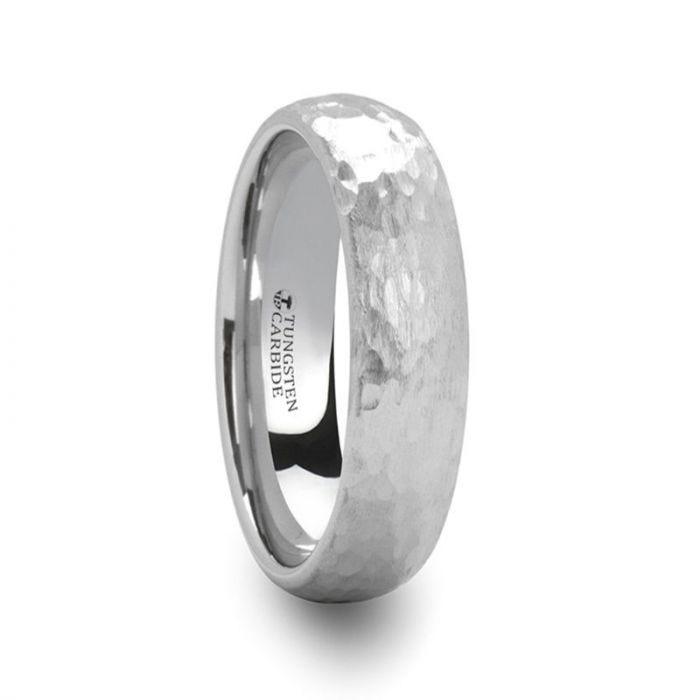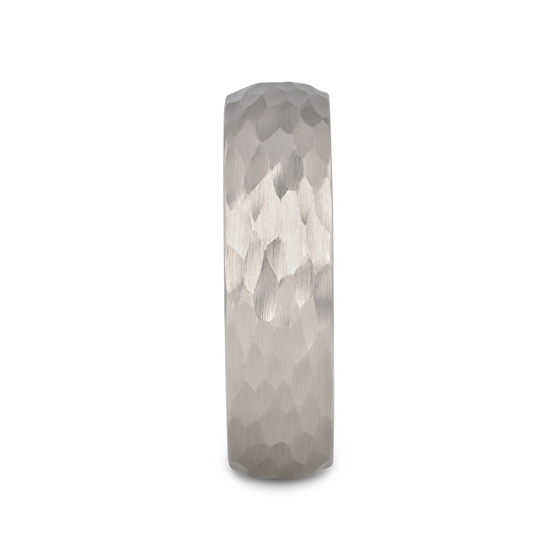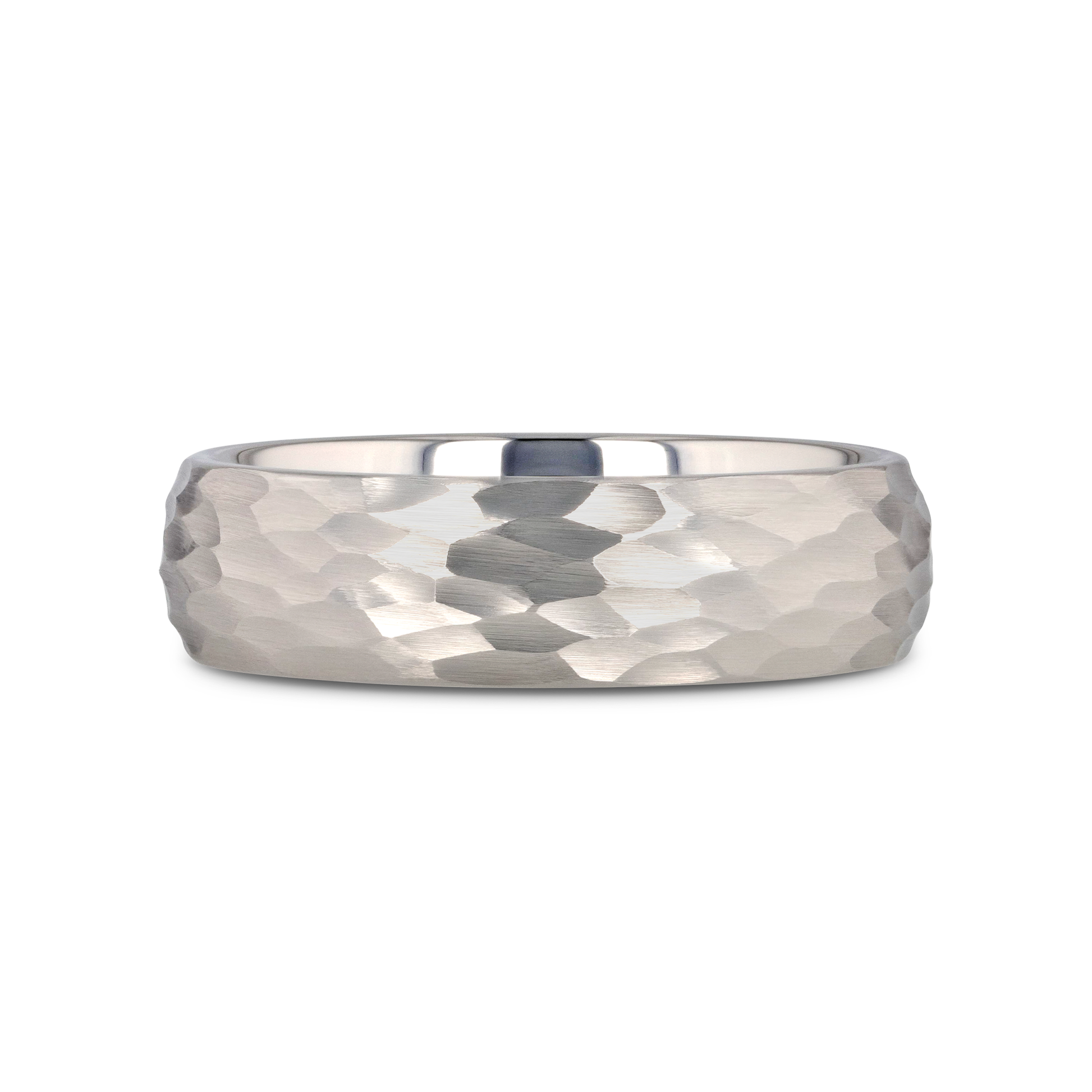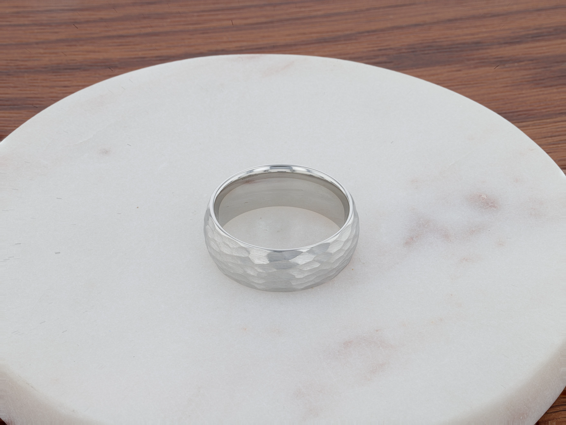 CHANDLER Domed Hammered Finish White Tungsten Ring - 6mm or 8mm