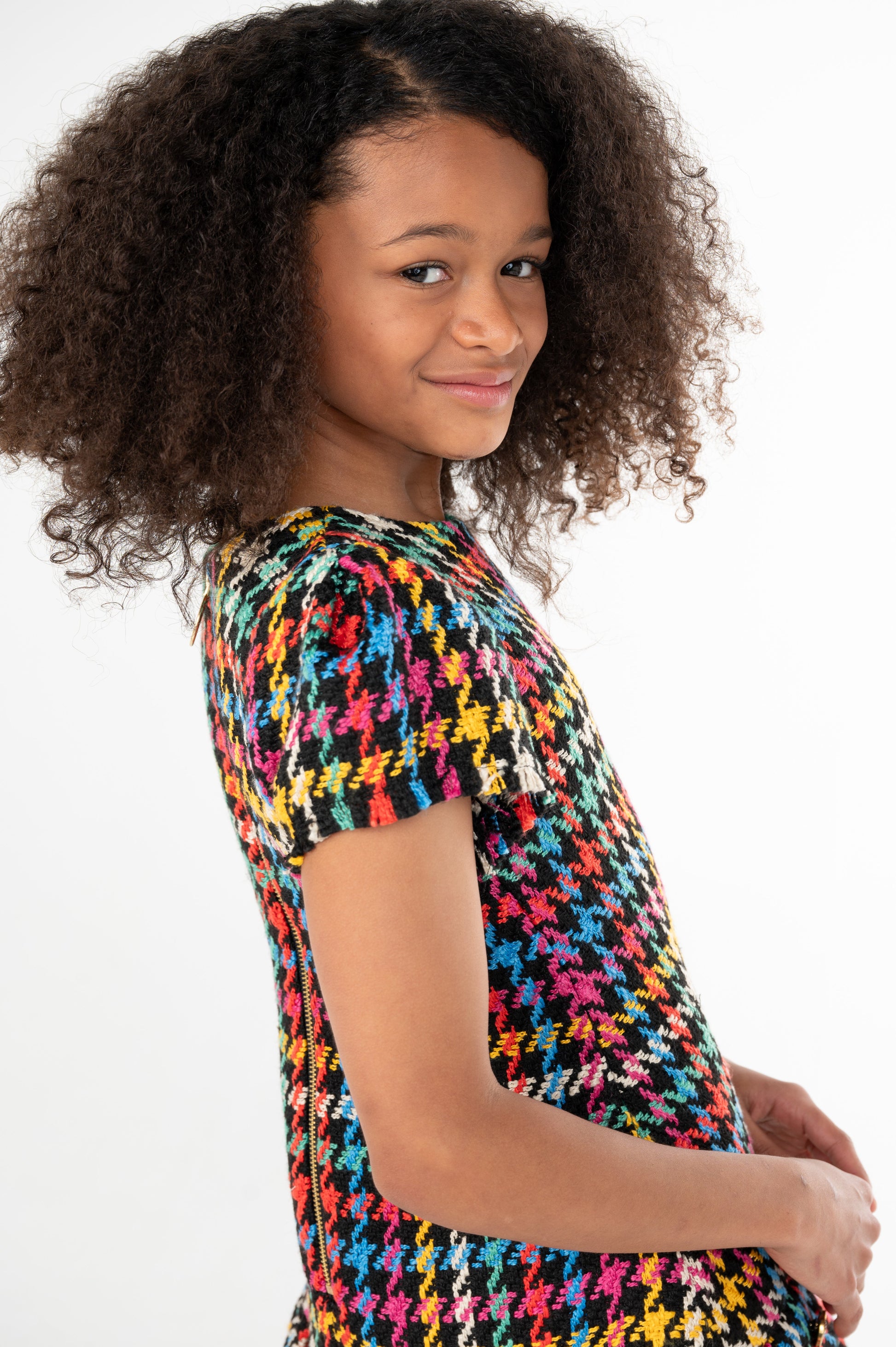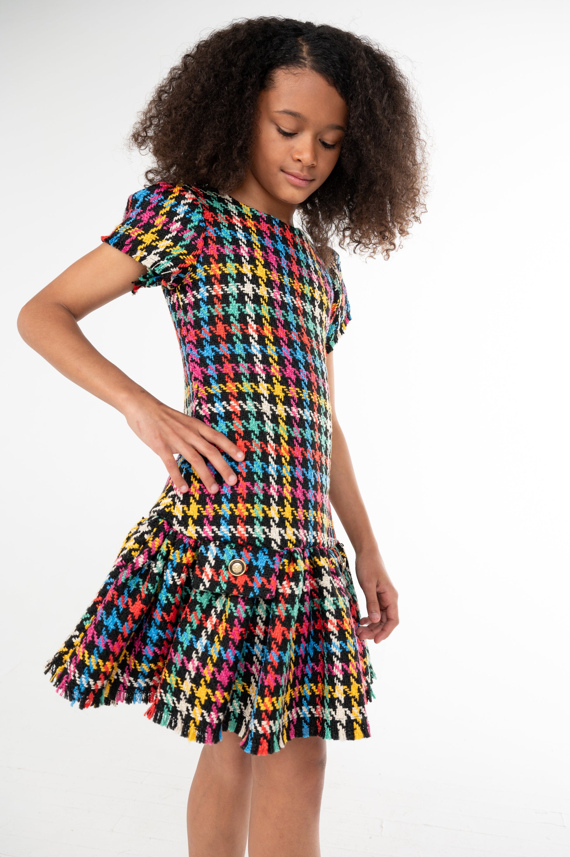 - Zoe "Charlie" multicolor houndstooth tweed dress