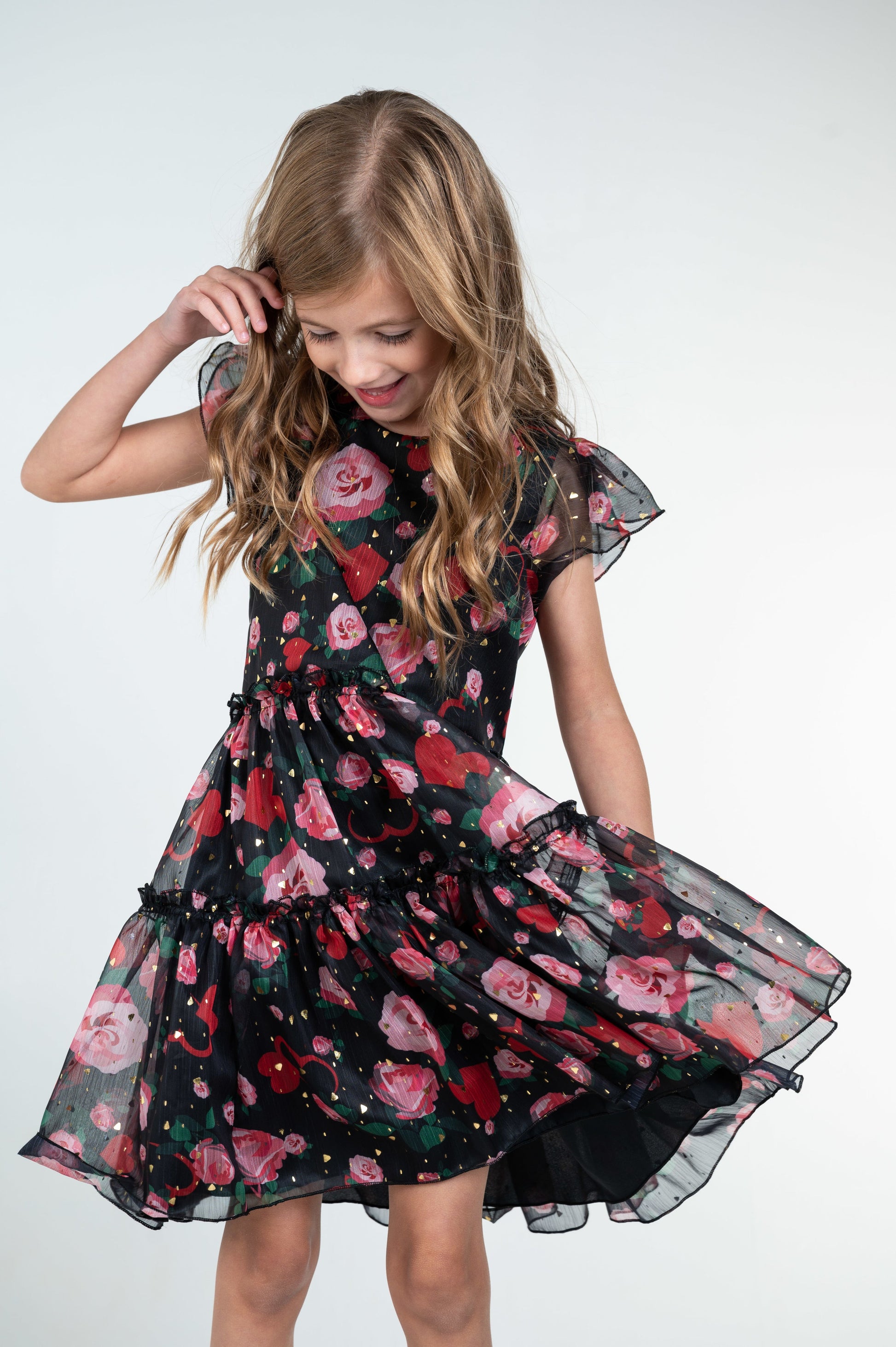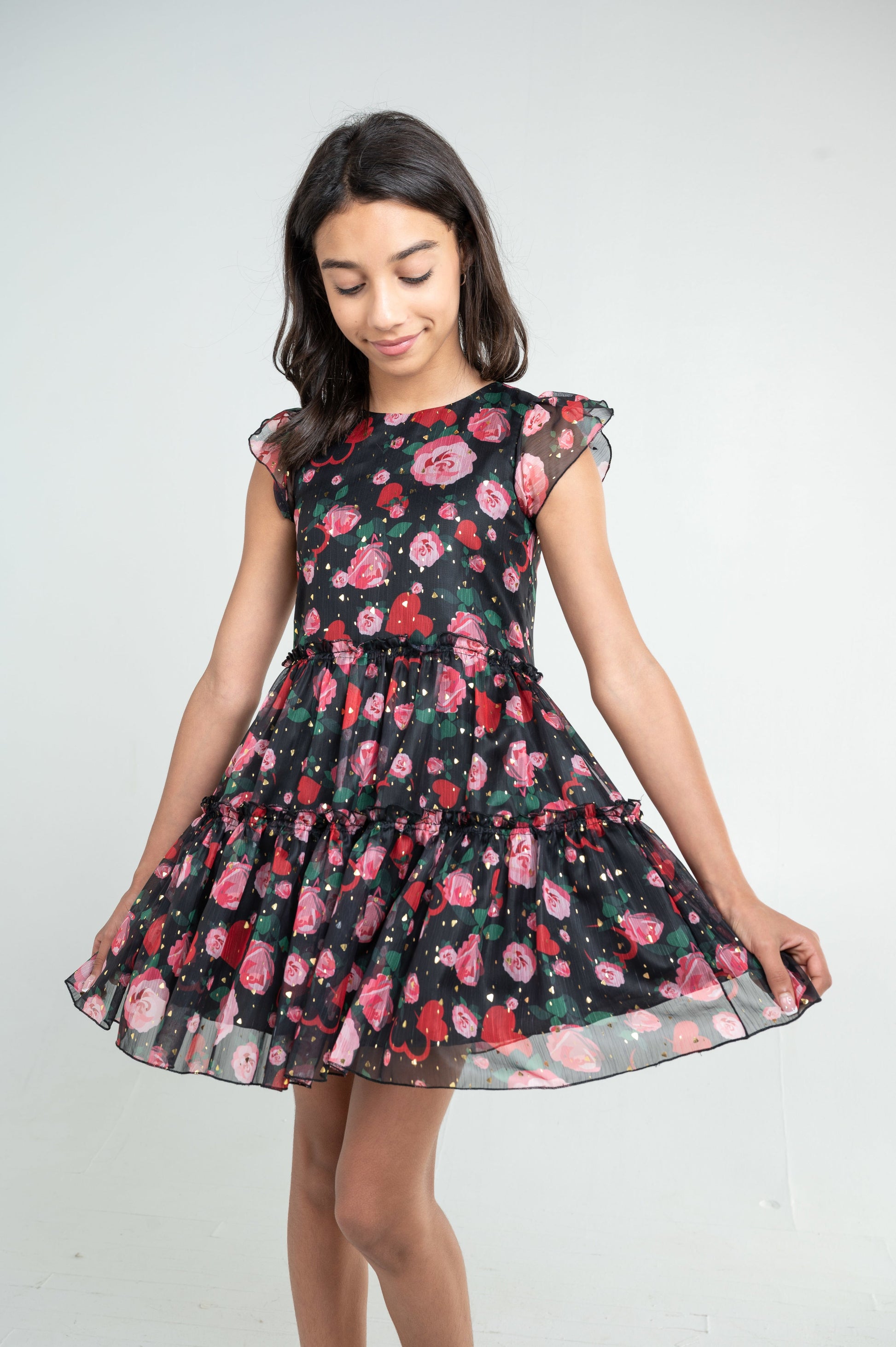 - Zoe "Chrishell" floral and heart-print chiffon dress